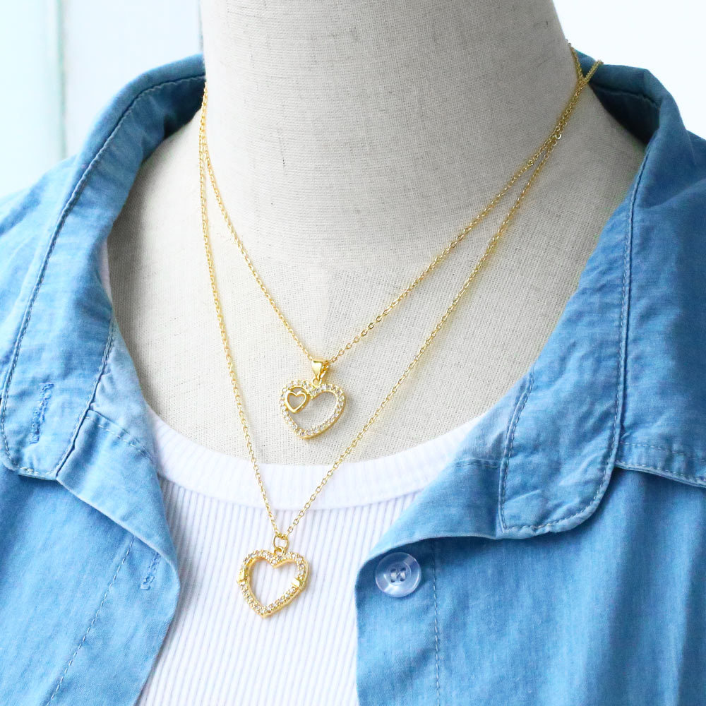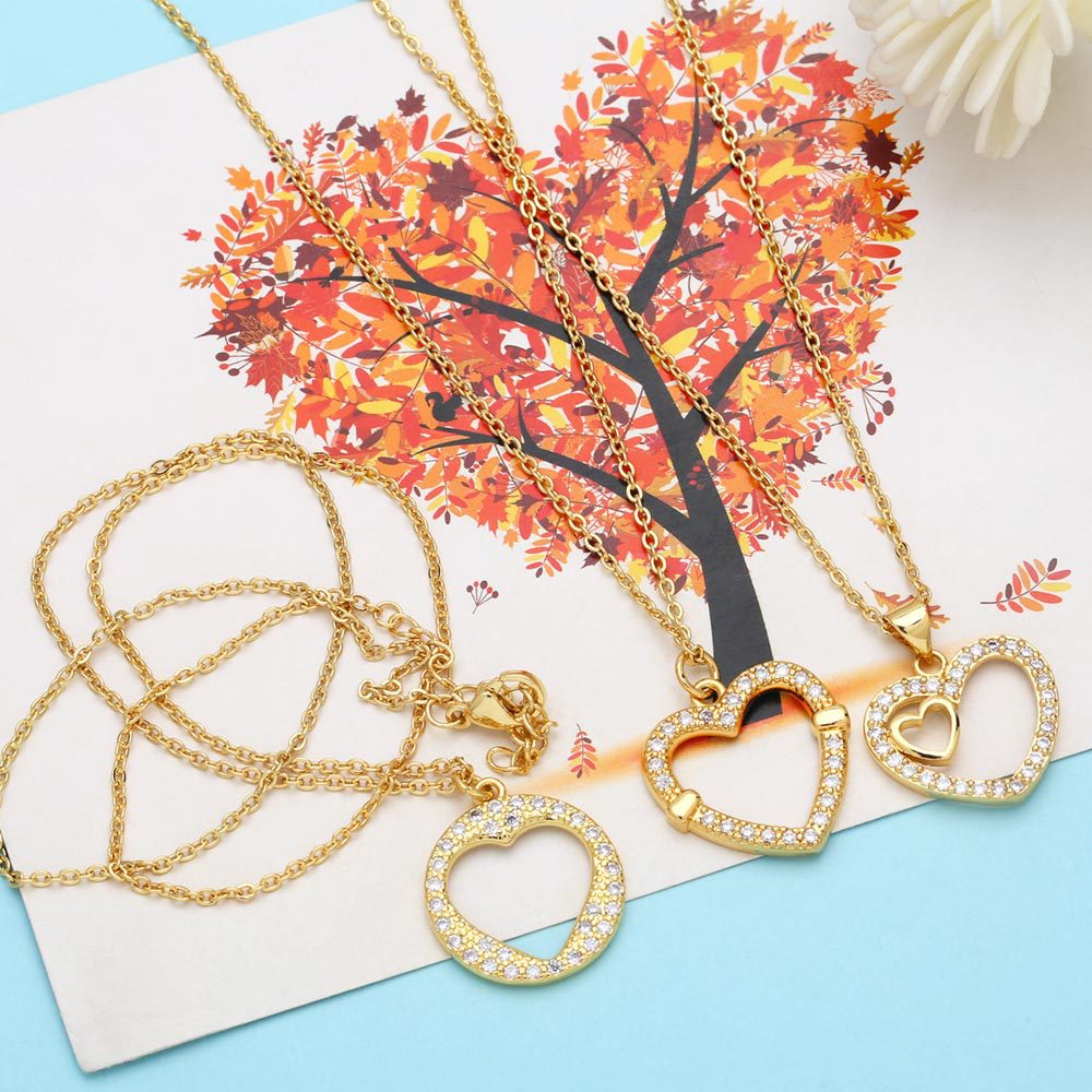 European and American simple personality hollow diamond love necklace female Internet celebrity trend heart-shaped peach heart pendant clavicle chain nkp21