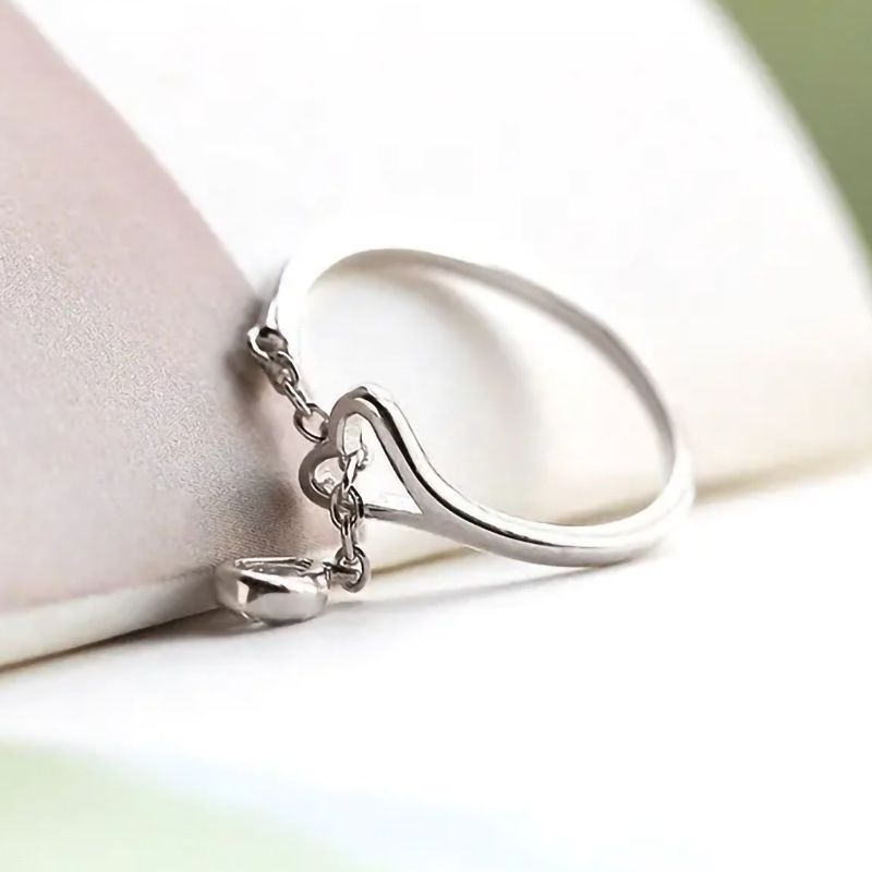 European and American simple personality ring women's heart chain pendant sweet ring daily matching accessories