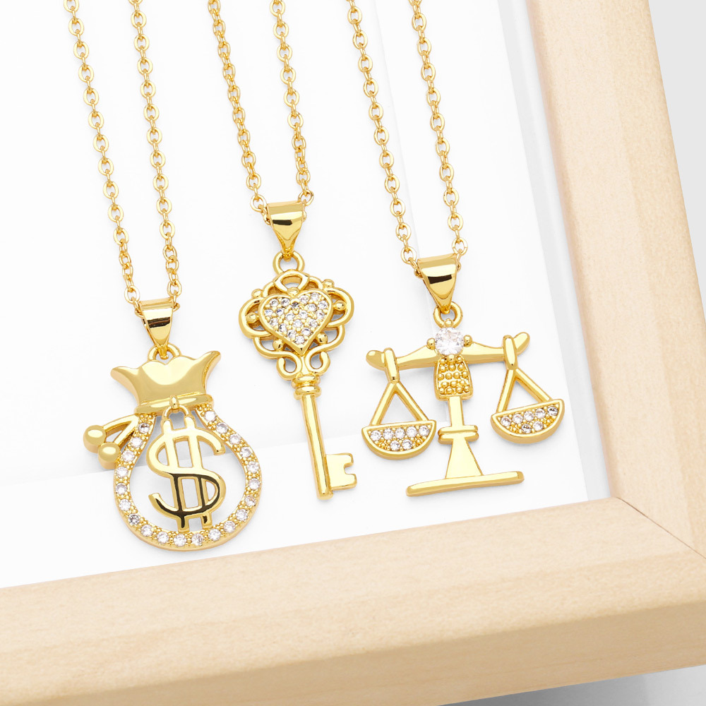 European and American simple retro money bag necklace female fashion love Libra key pendant clavicle chain nkb806