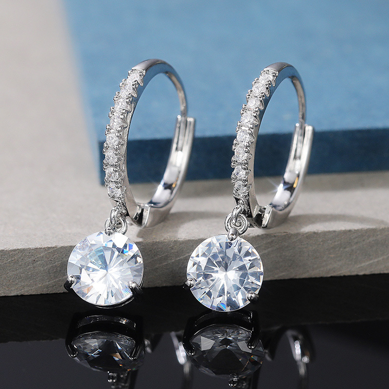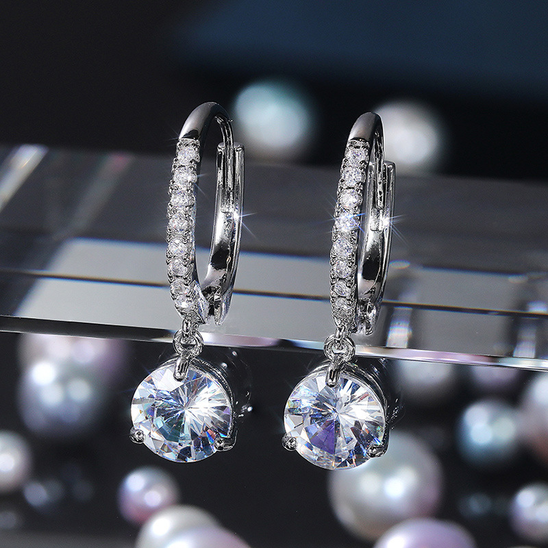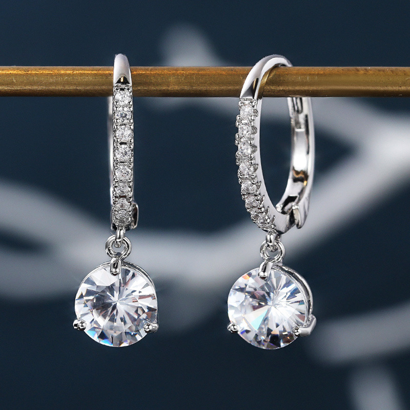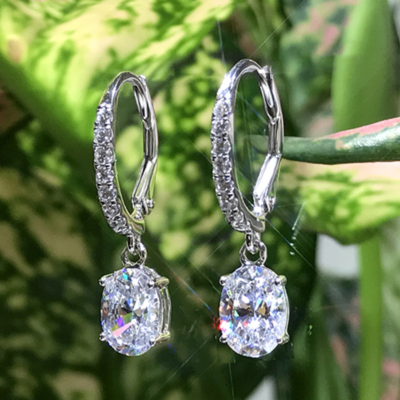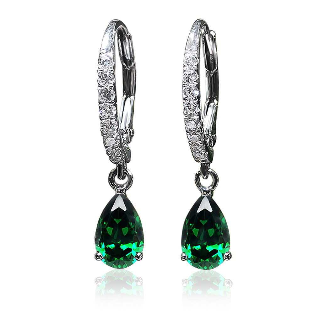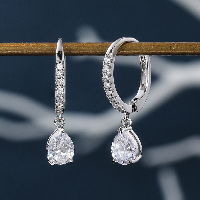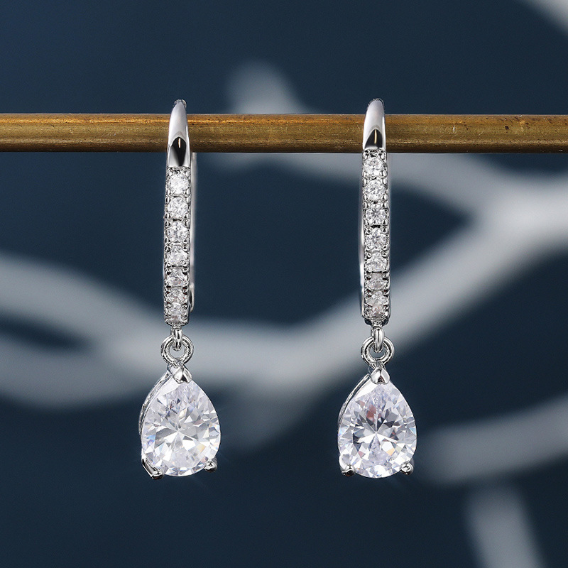 European and American source exquisite teardrop pear-shaped zircon earrings for women copper plated white gold short elegant earrings