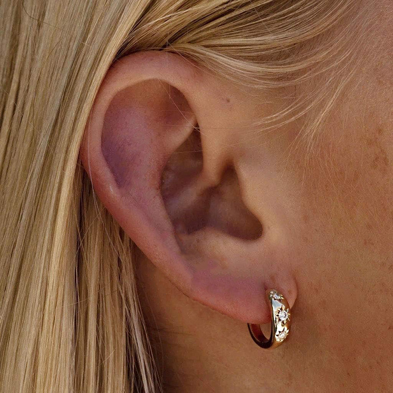 European and American star micro-inlaid earrings personalized design new earrings French style metallic earrings
