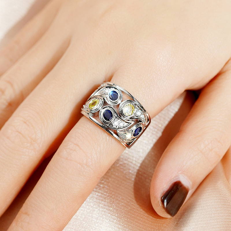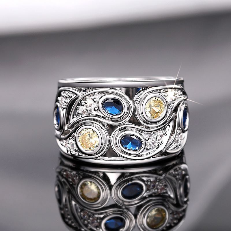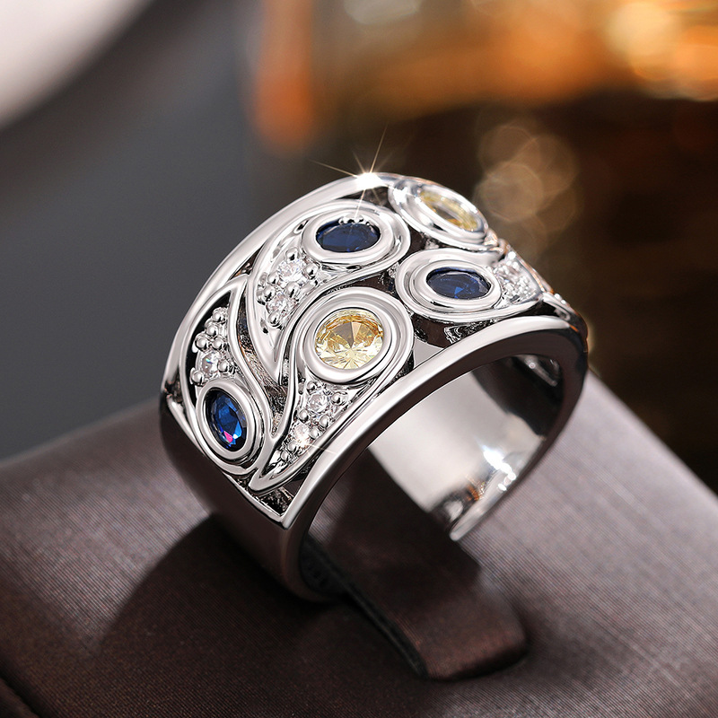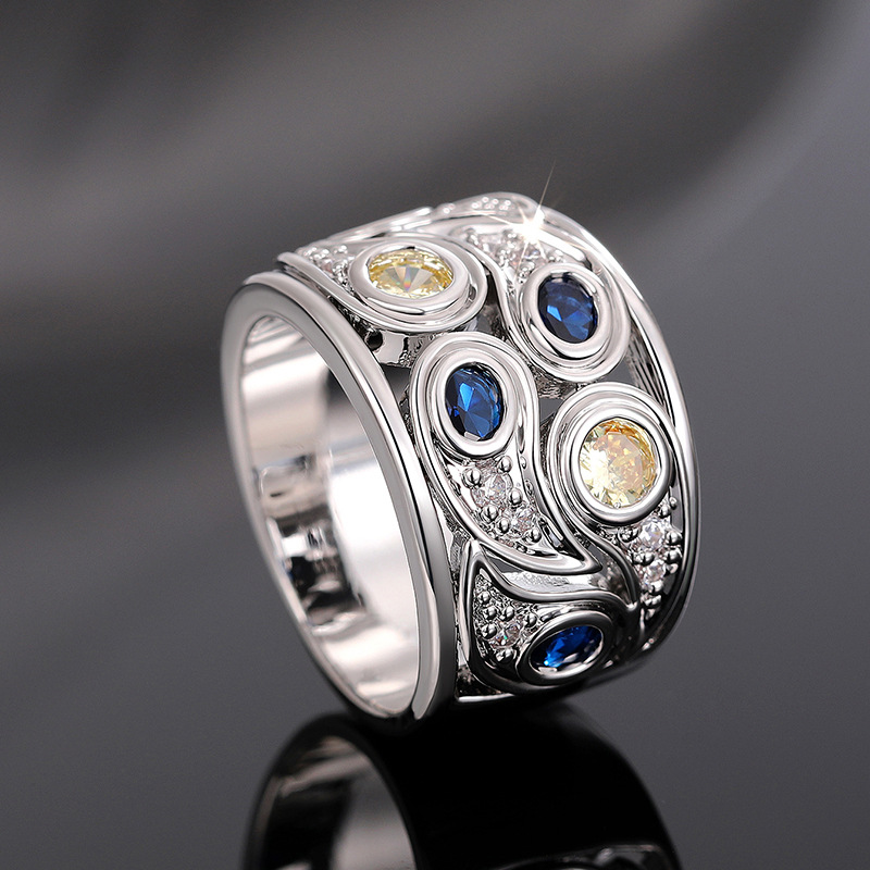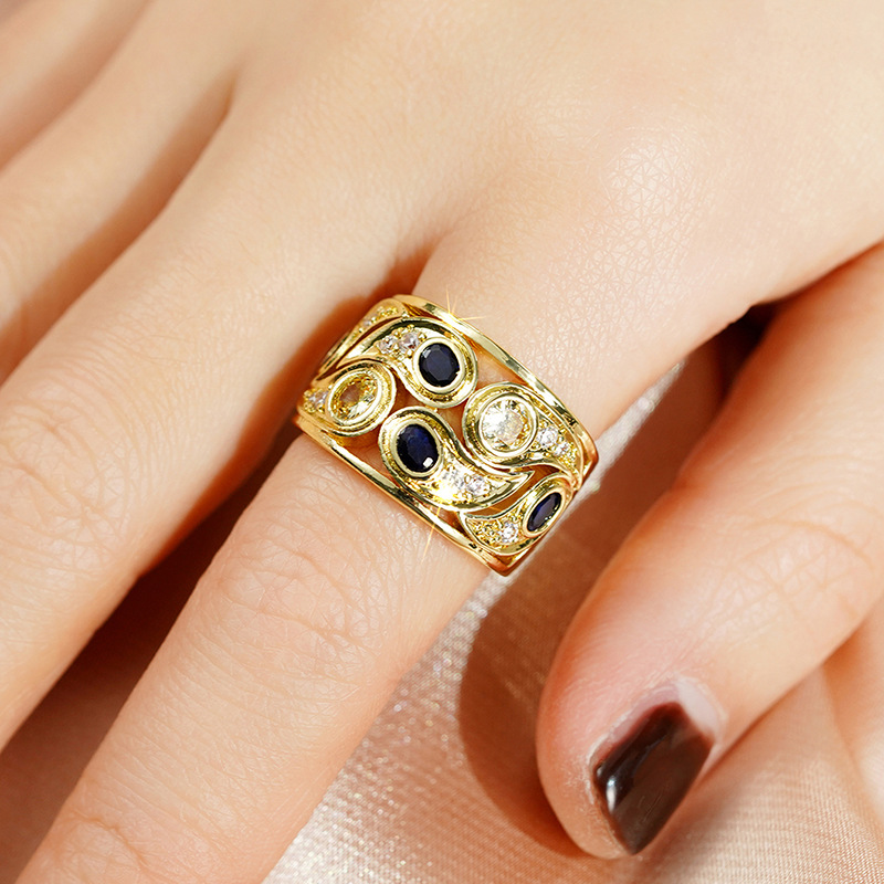 European and American luxury design ring fashionable temperament horse eye zircon ring multi-layer hollow design index finger ring