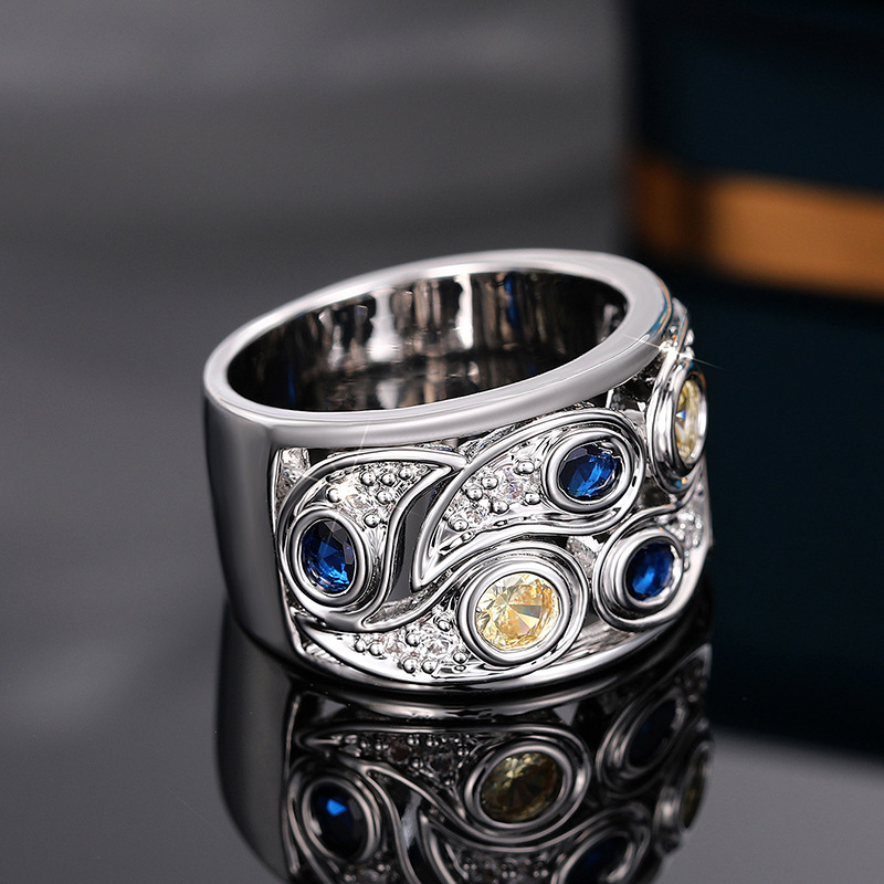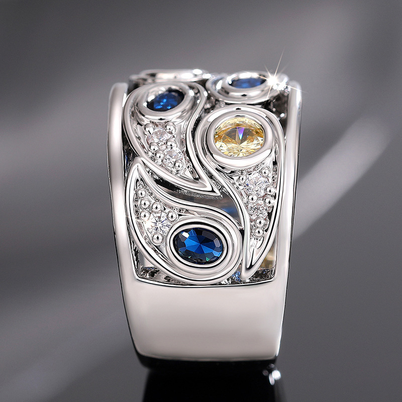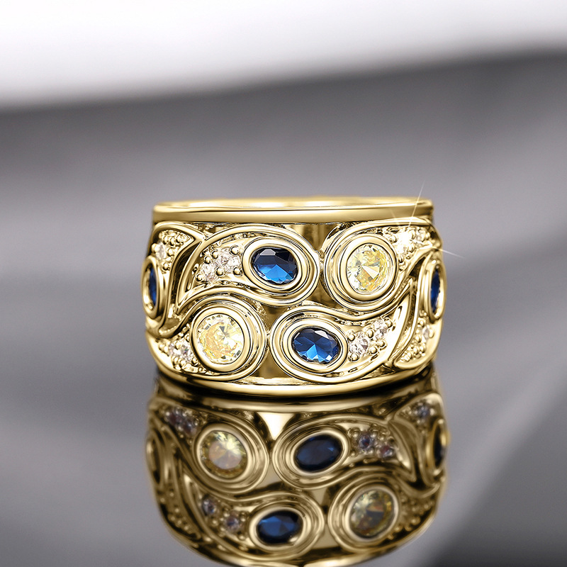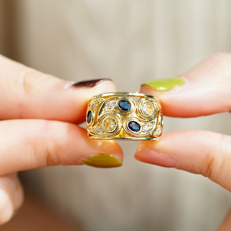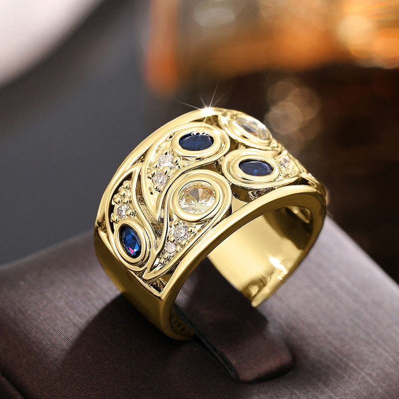 European and American luxury design ring fashionable temperament horse eye zircon ring multi-layer hollow design index finger ring