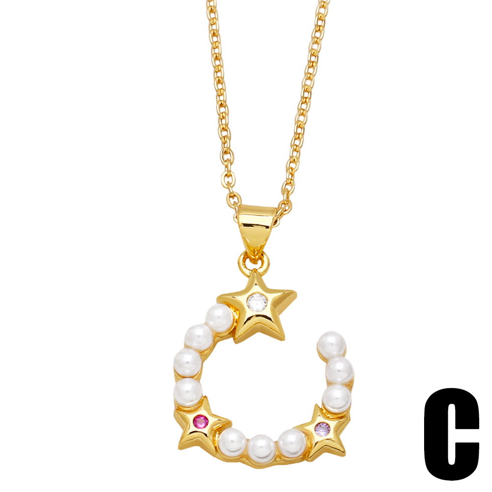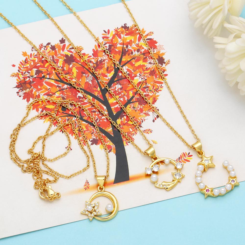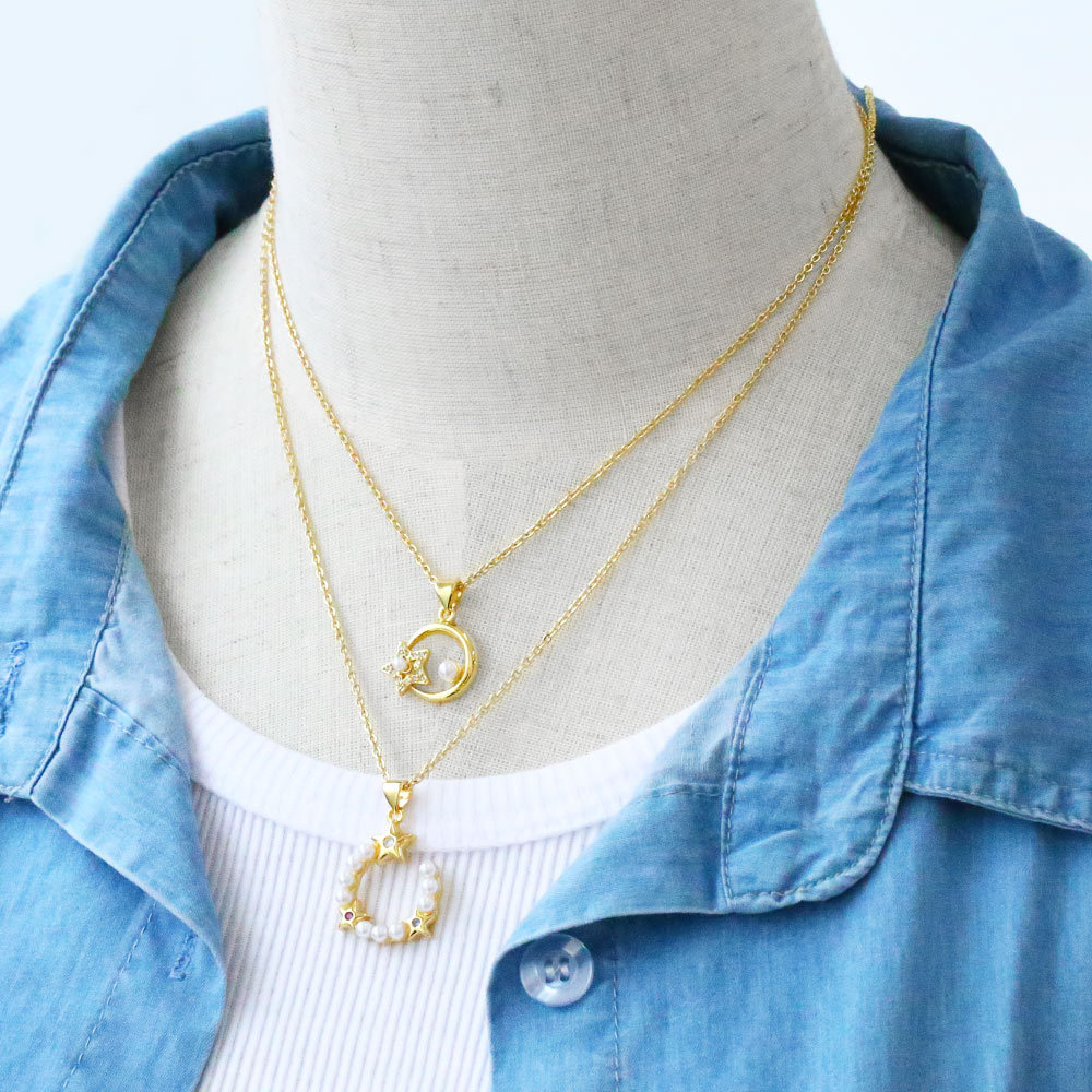 European and American style all-match star and moon pearl necklace fashionable and simple niche design clavicle chain nkb726