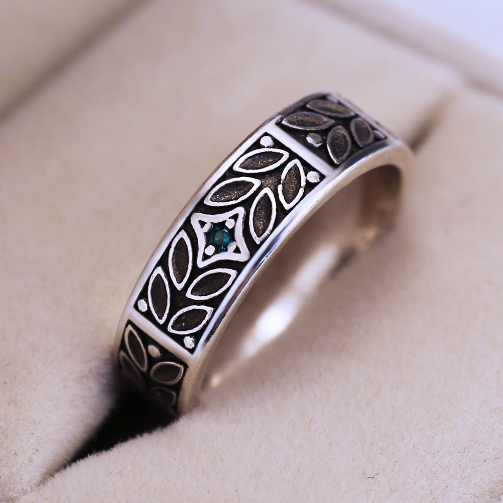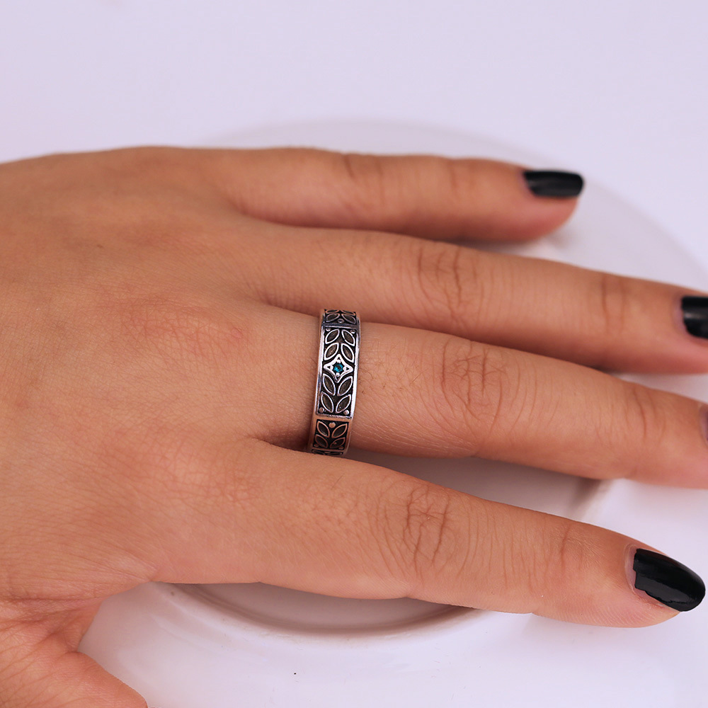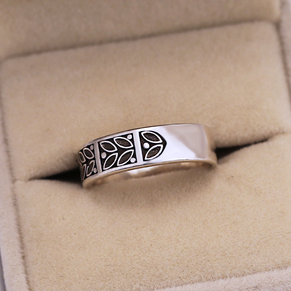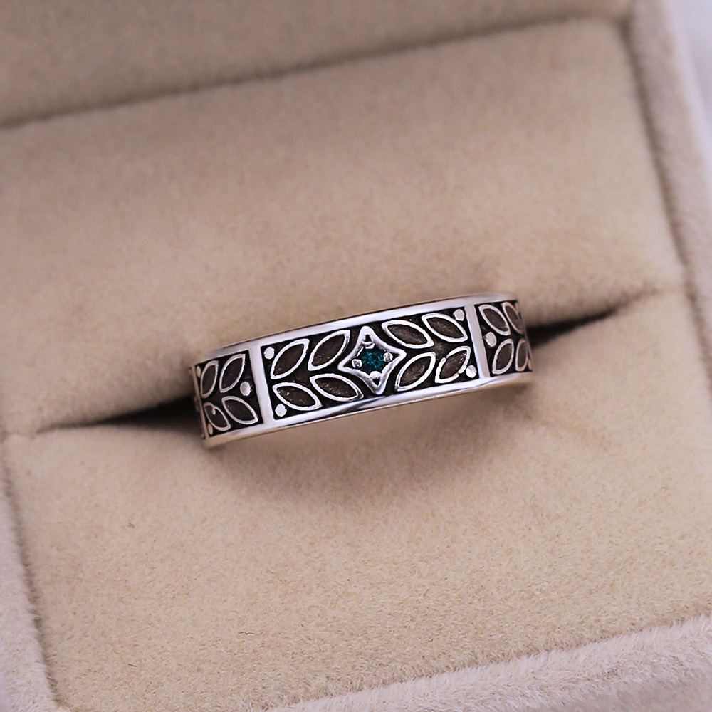 Classic retro engraved auspicious flower ring classical wide version Miao ring Yunnan ethnic style men and women's jewelry