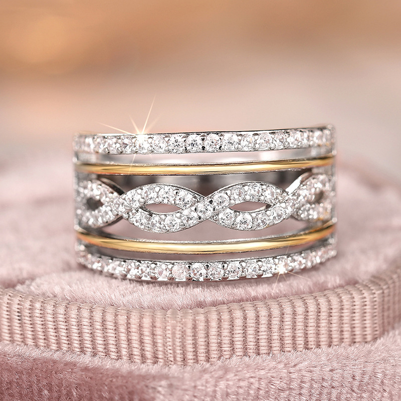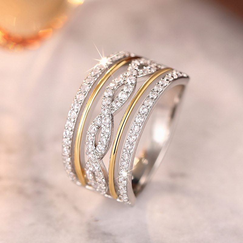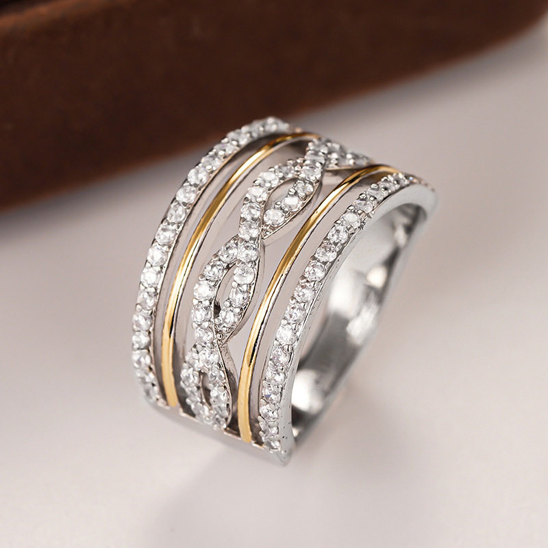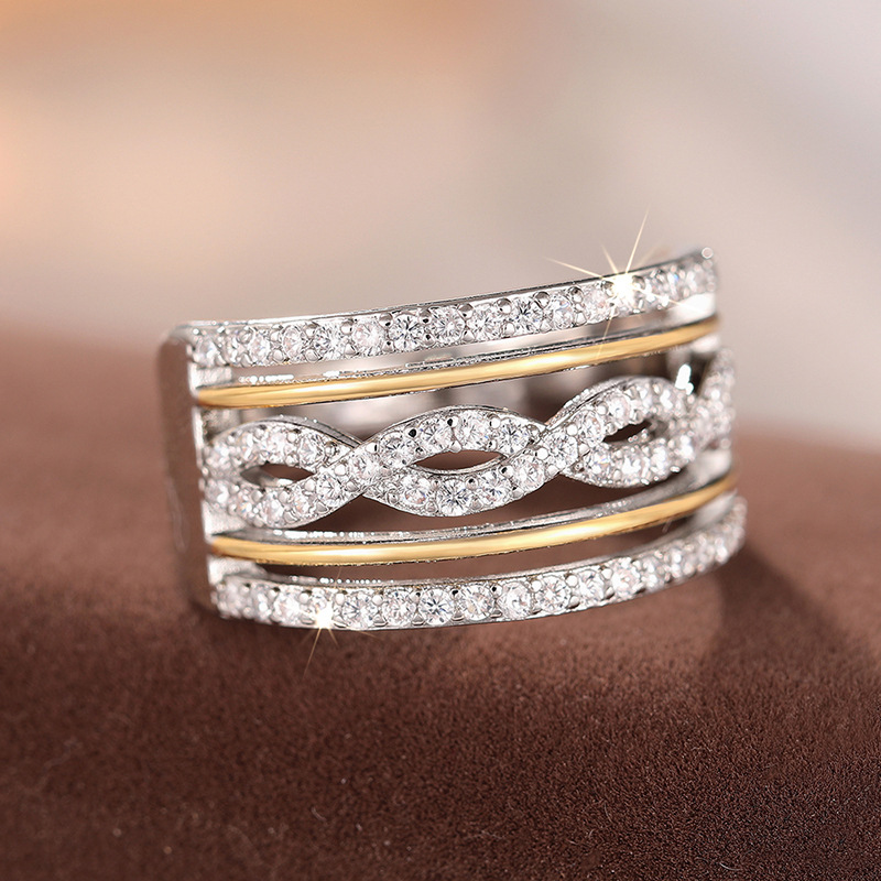 European and American style exquisite two-tone ring for princesses with micro-inlaid zircon jewelry, high-end line ring