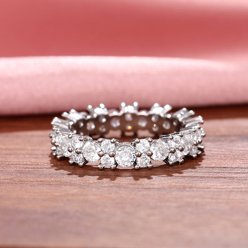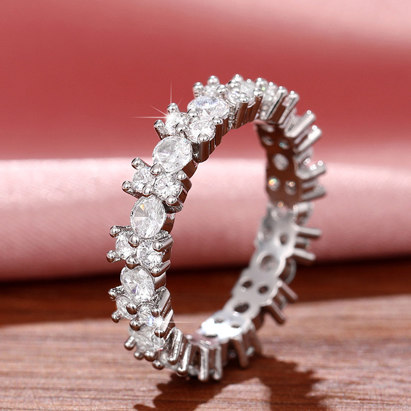Micro-inlaid celebrity style classic all-match popular ring six-claw zircon wedding ring European and American style light luxury ring