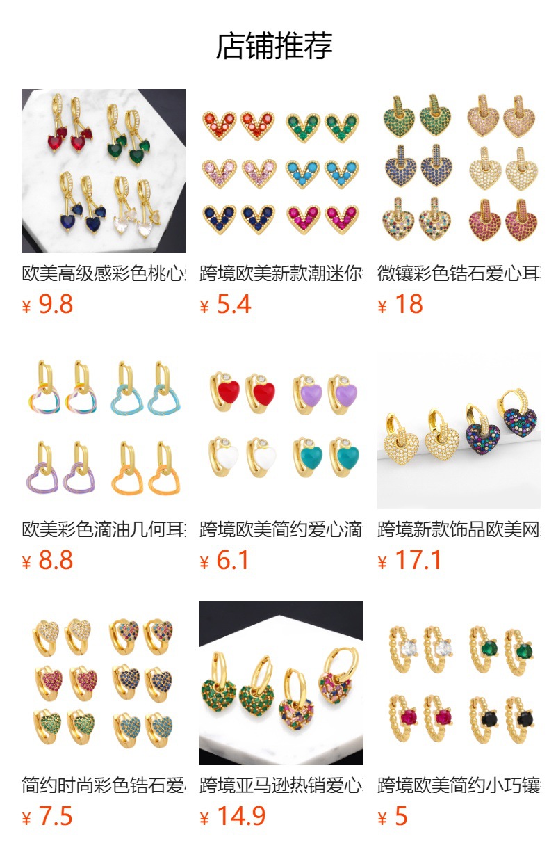 European and American style fashion heart earrings female Internet celebrity trend personality color diamond heart-shaped earrings wholesale erq98