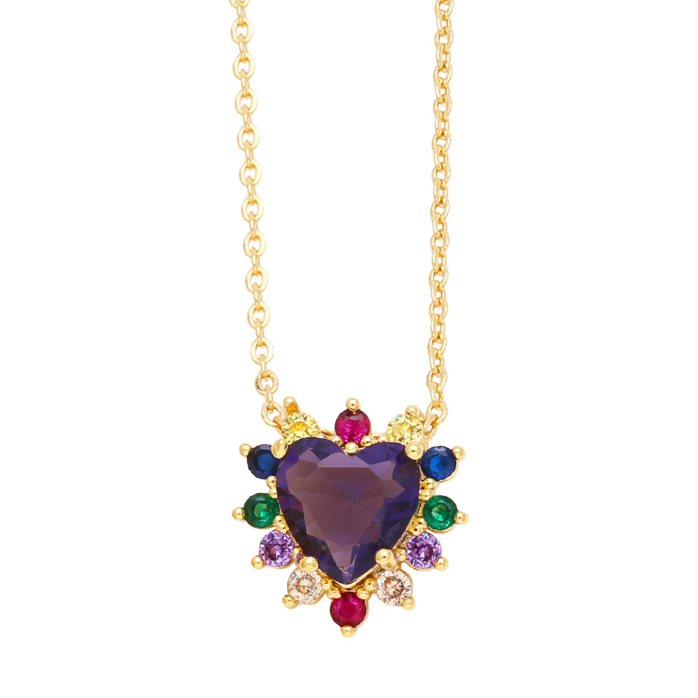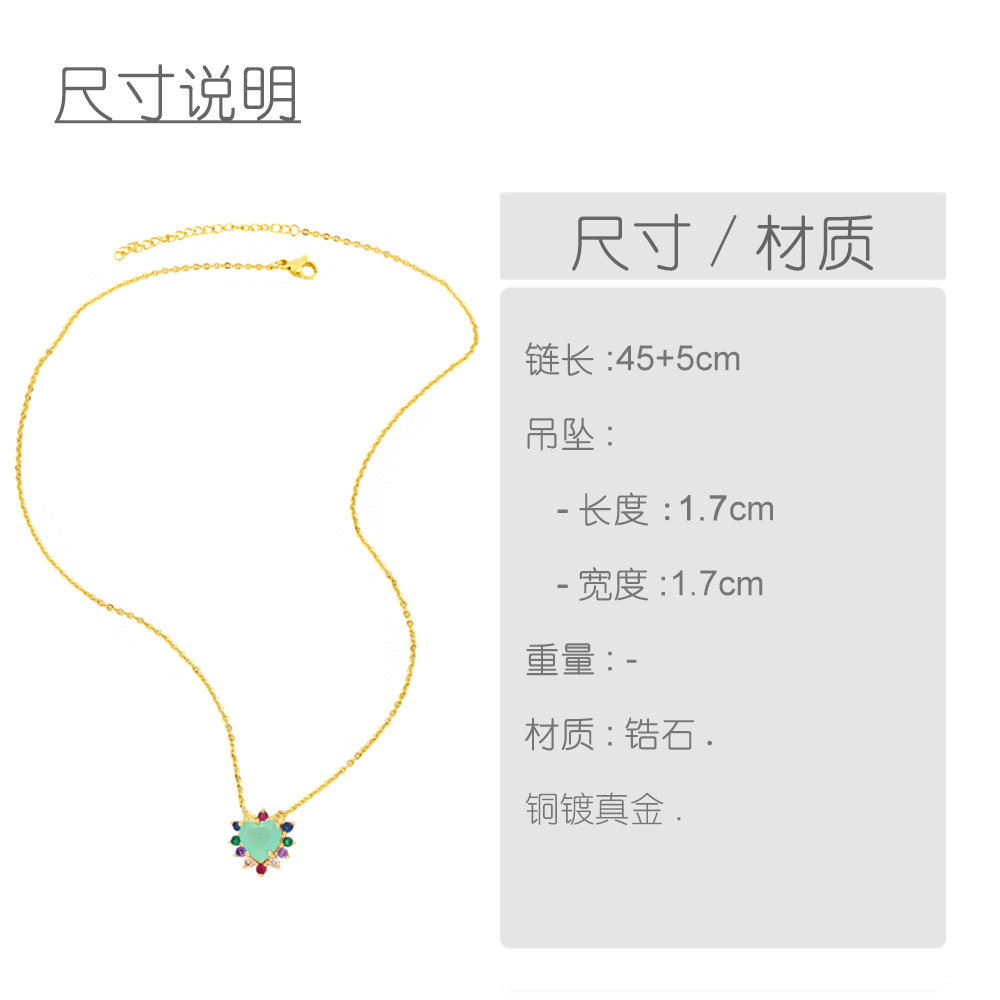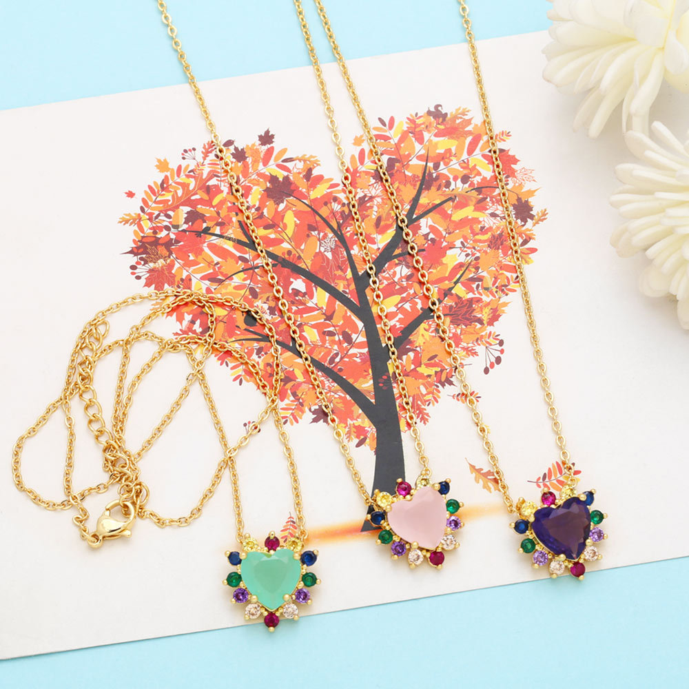 European and American style fashion inlaid with colorful zircon love necklace personality niche design heart-shaped clavicle necklace wholesale nkn55