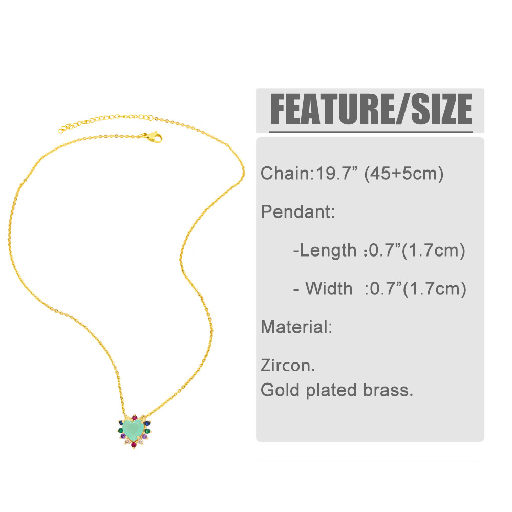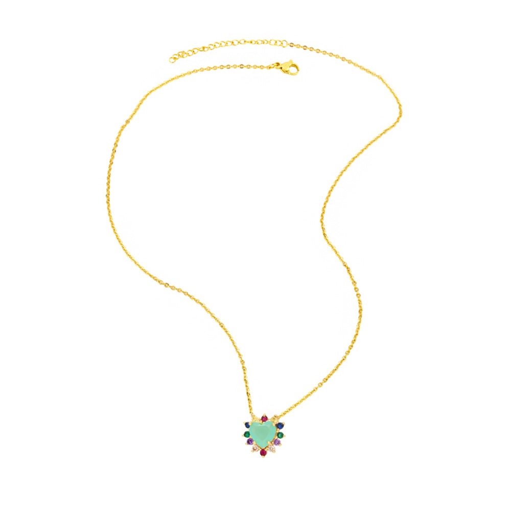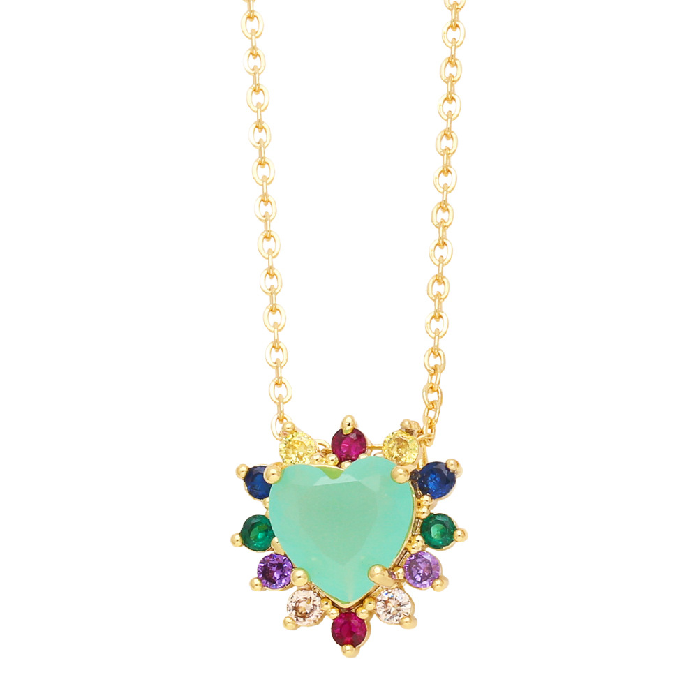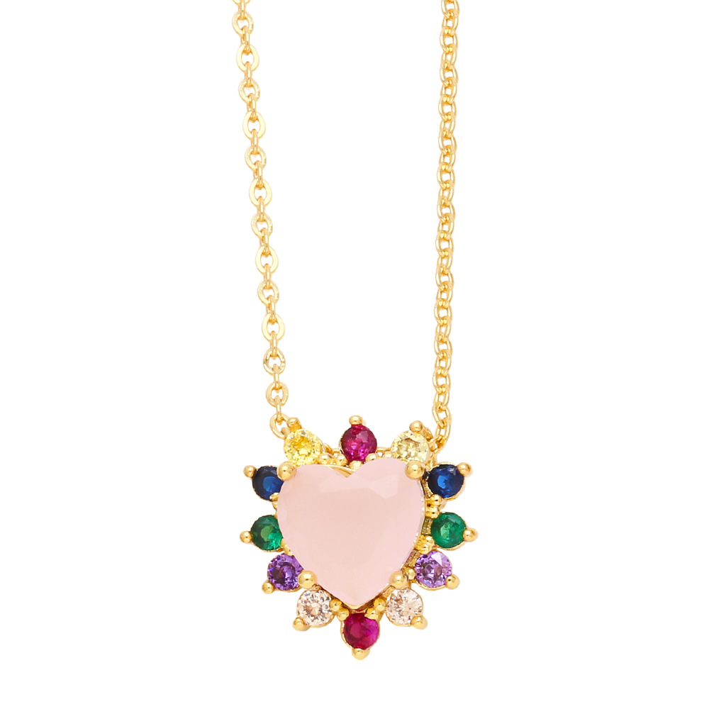 European and American style fashion inlaid with colorful zircon love necklace personality niche design heart-shaped clavicle necklace wholesale nkn55