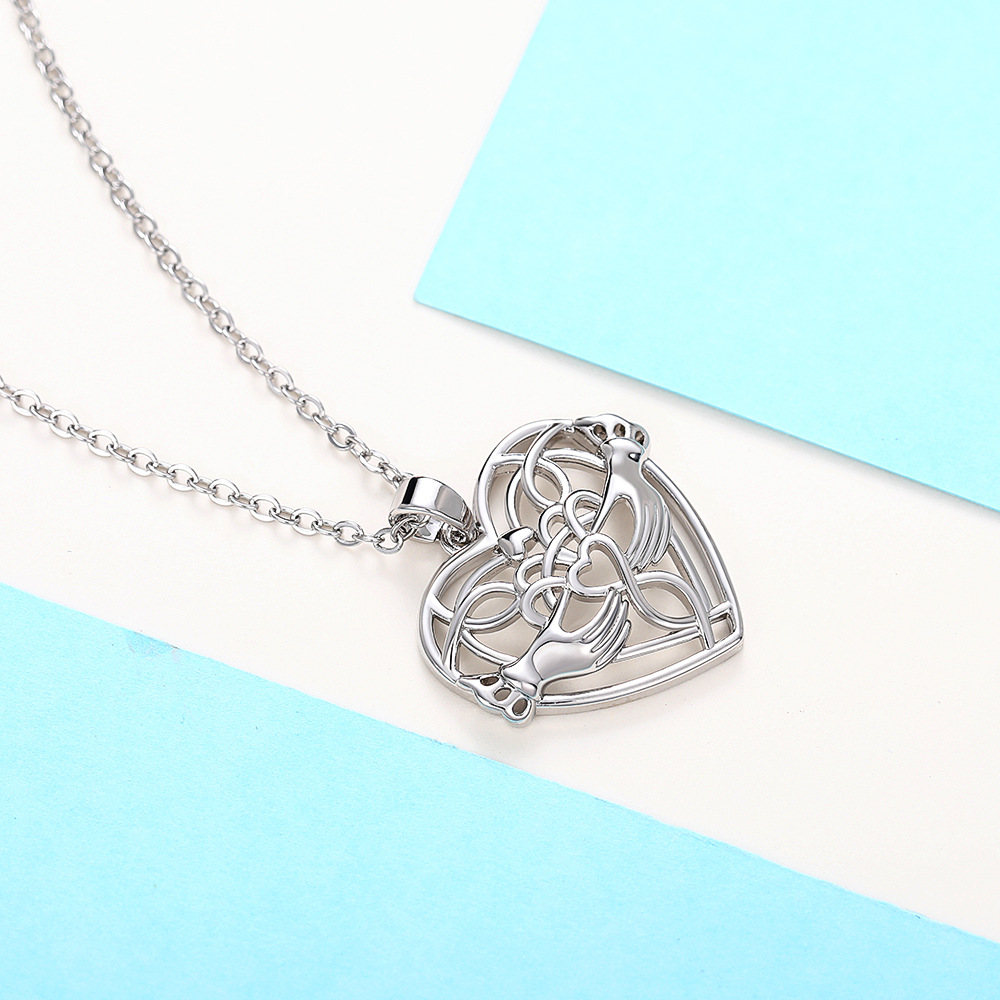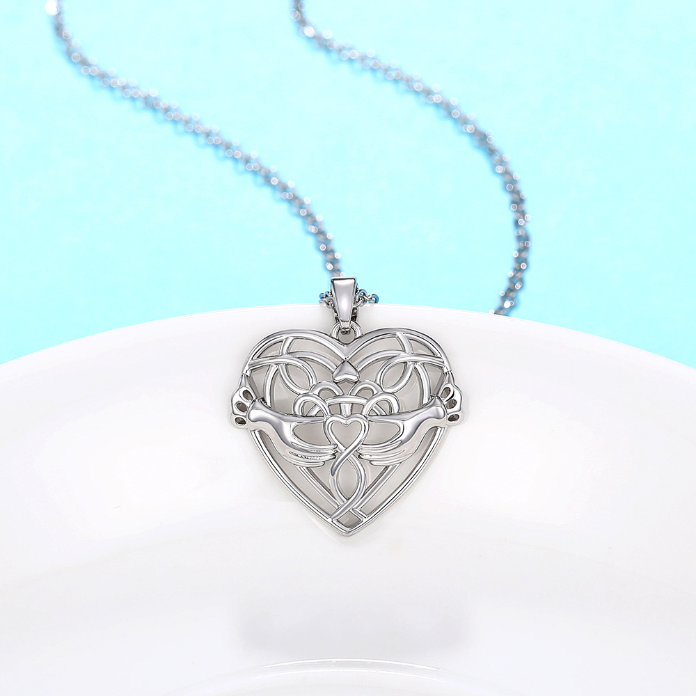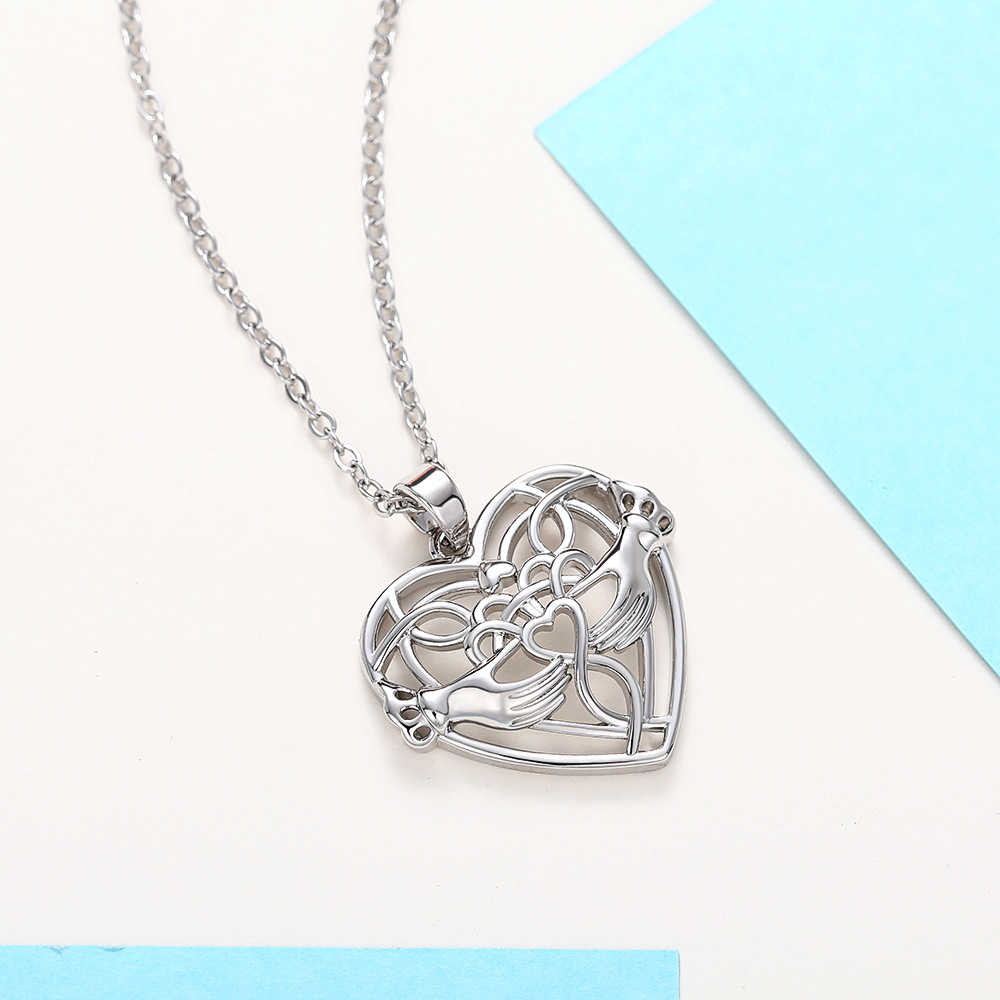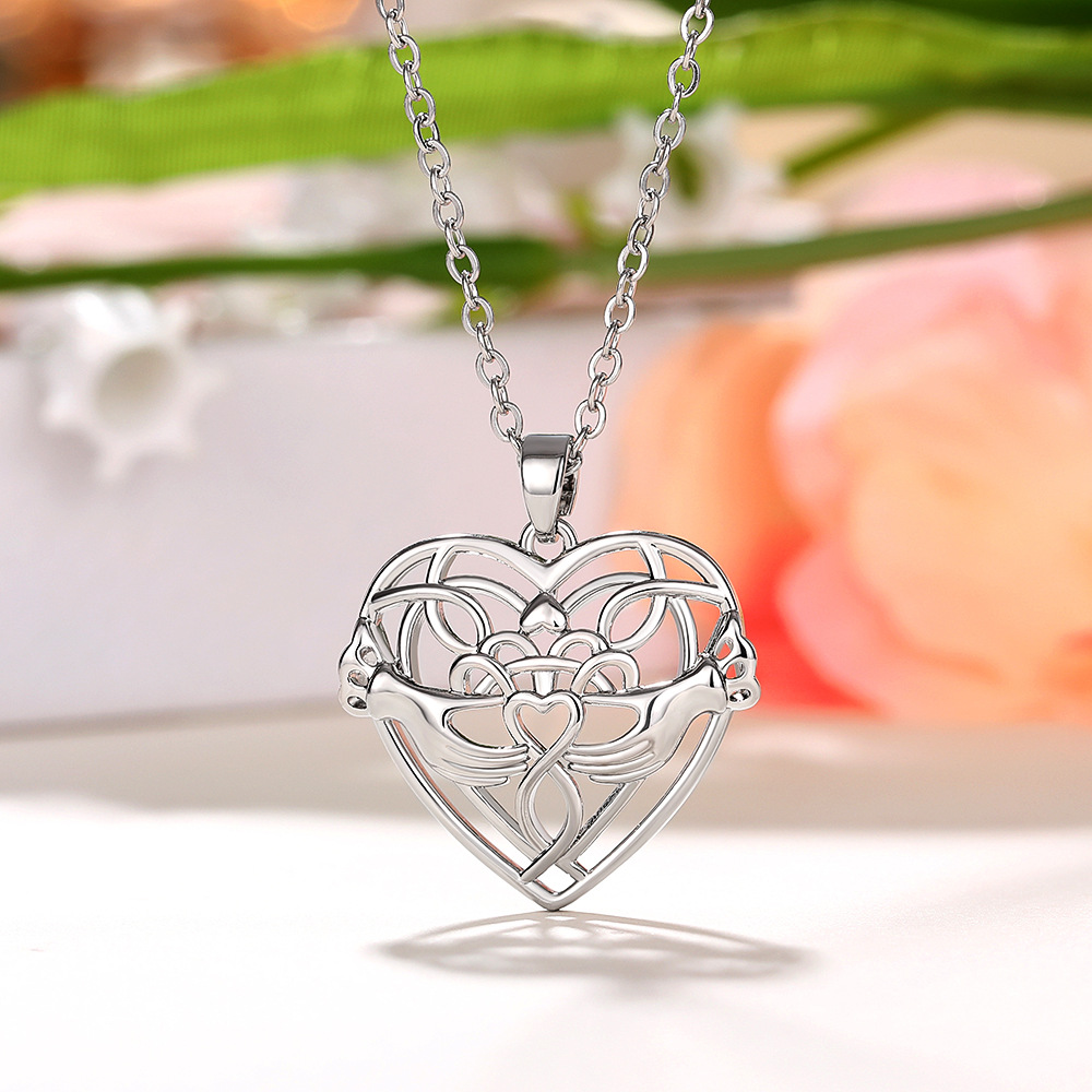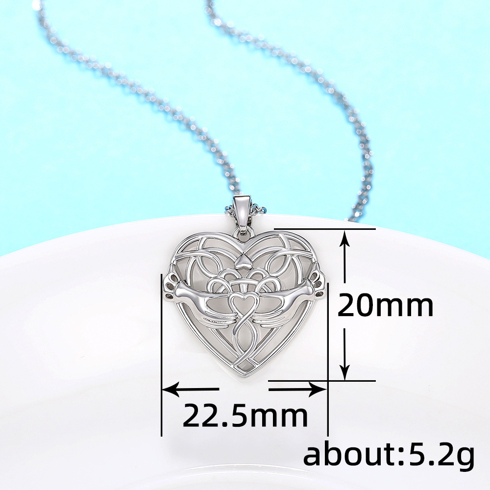 European and American style heart necklace for women, ethnic hollow popular sweater chain, double hand holding heart necklace