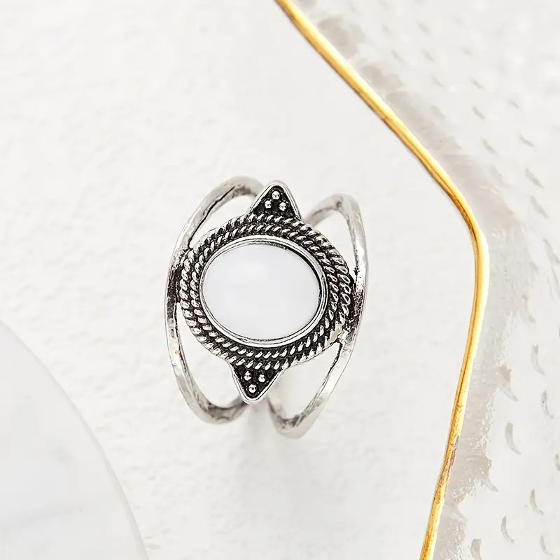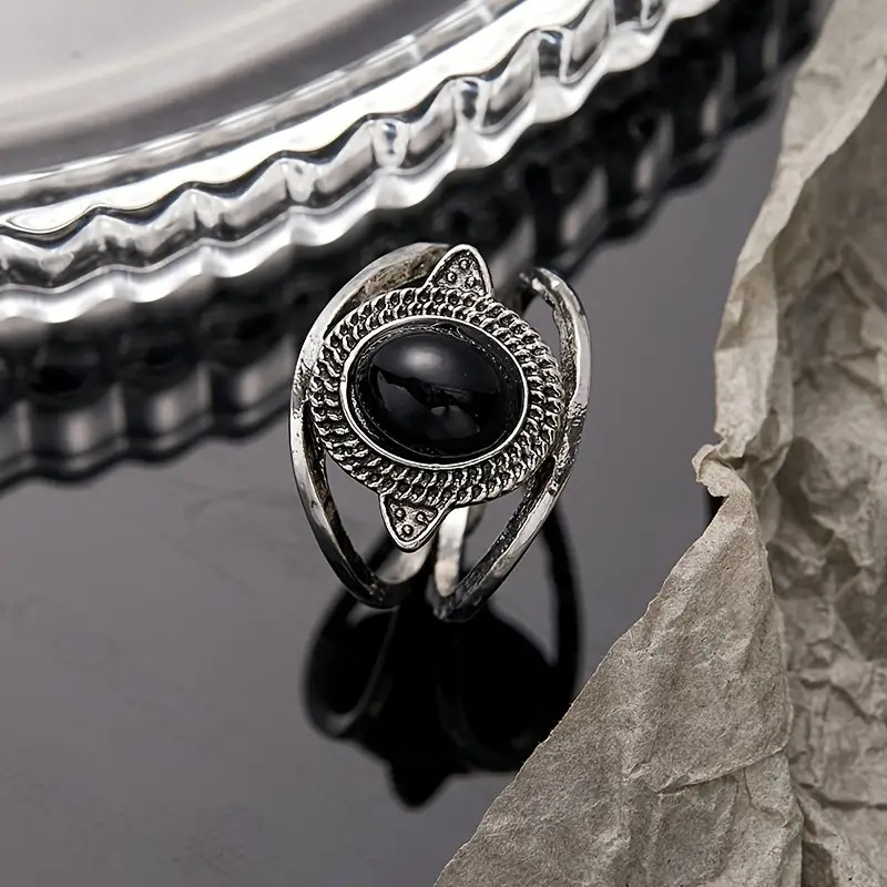 European and American style jewelry oval fashion simple personality stone ring Western style retro ring