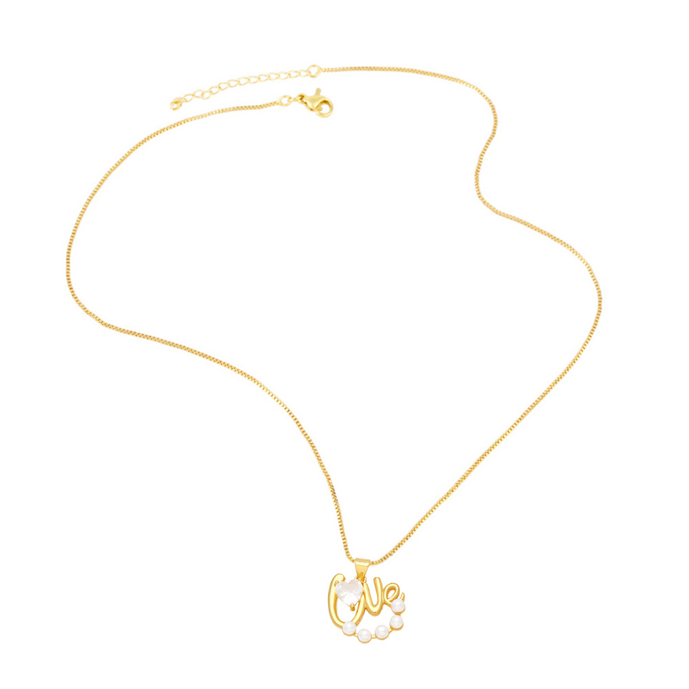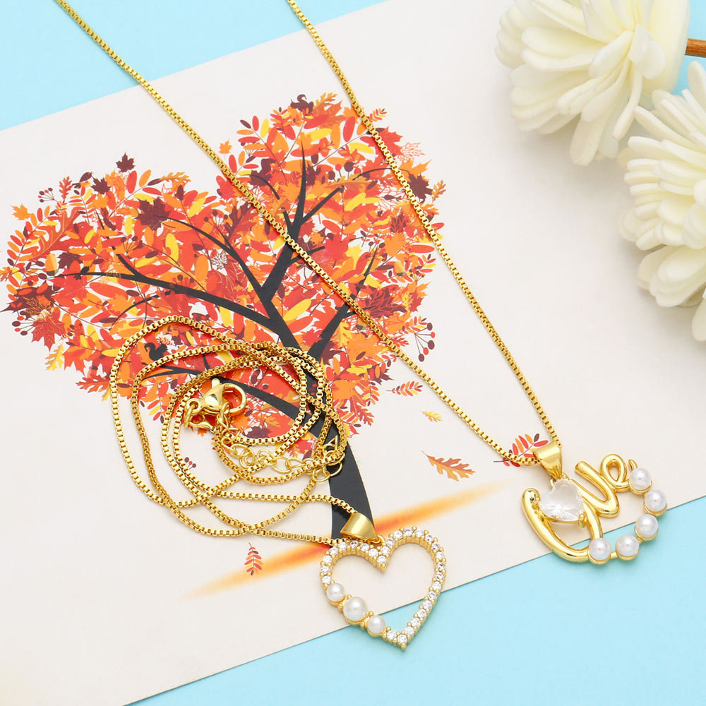 European and American style love necklace for women, micro-inlaid pearls, love letter pendant necklace, Valentine's Day gift nkb539
