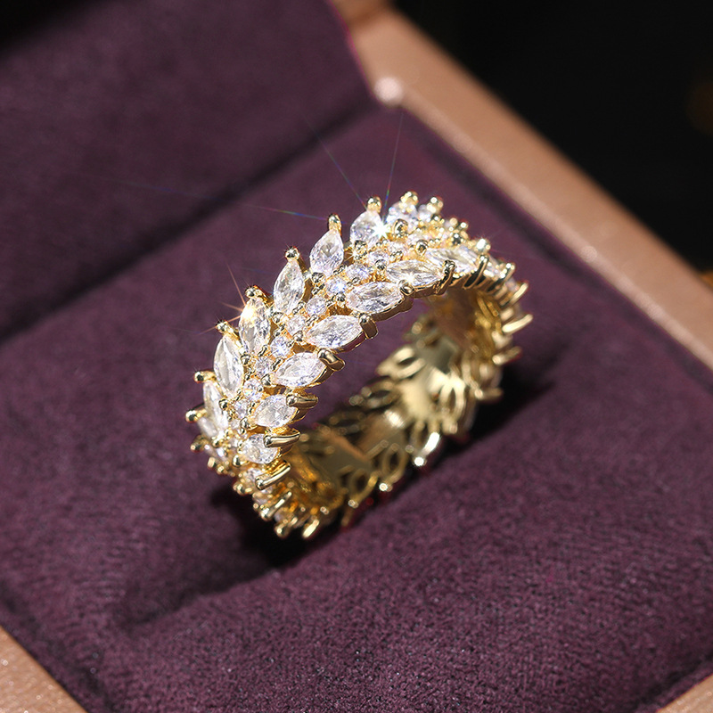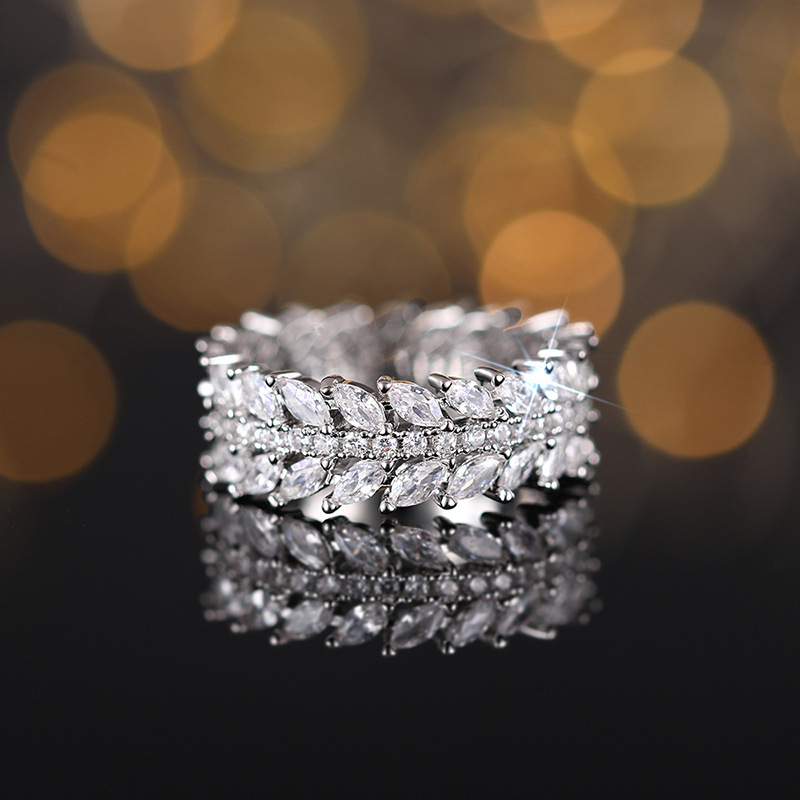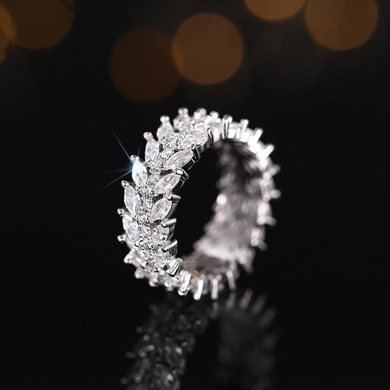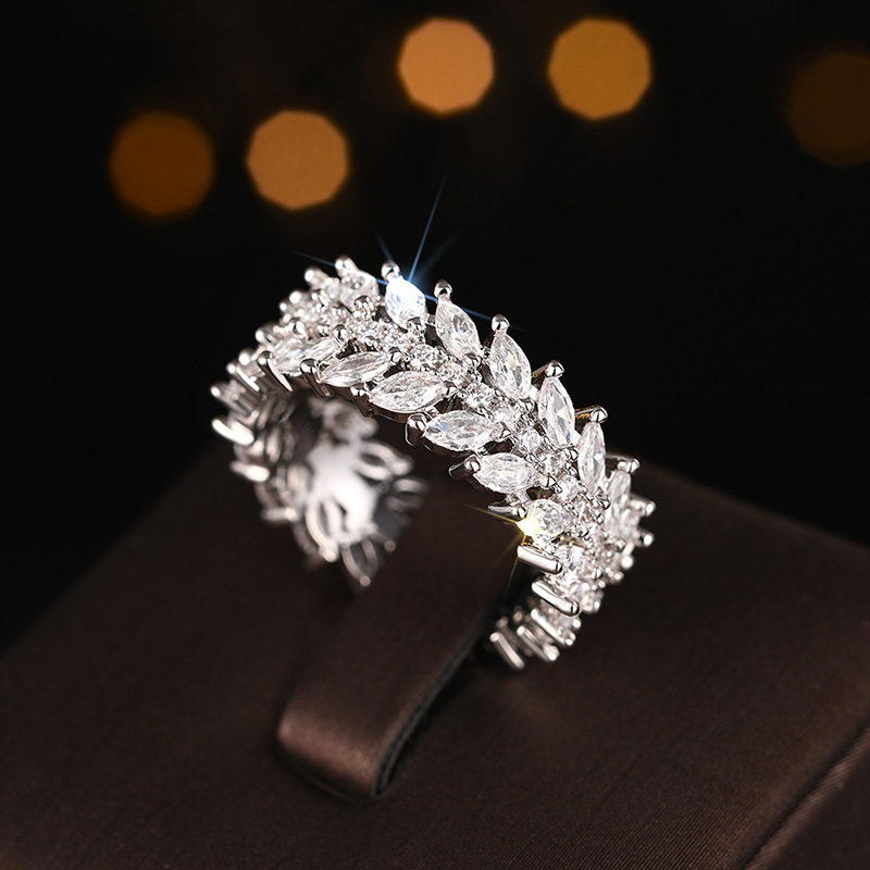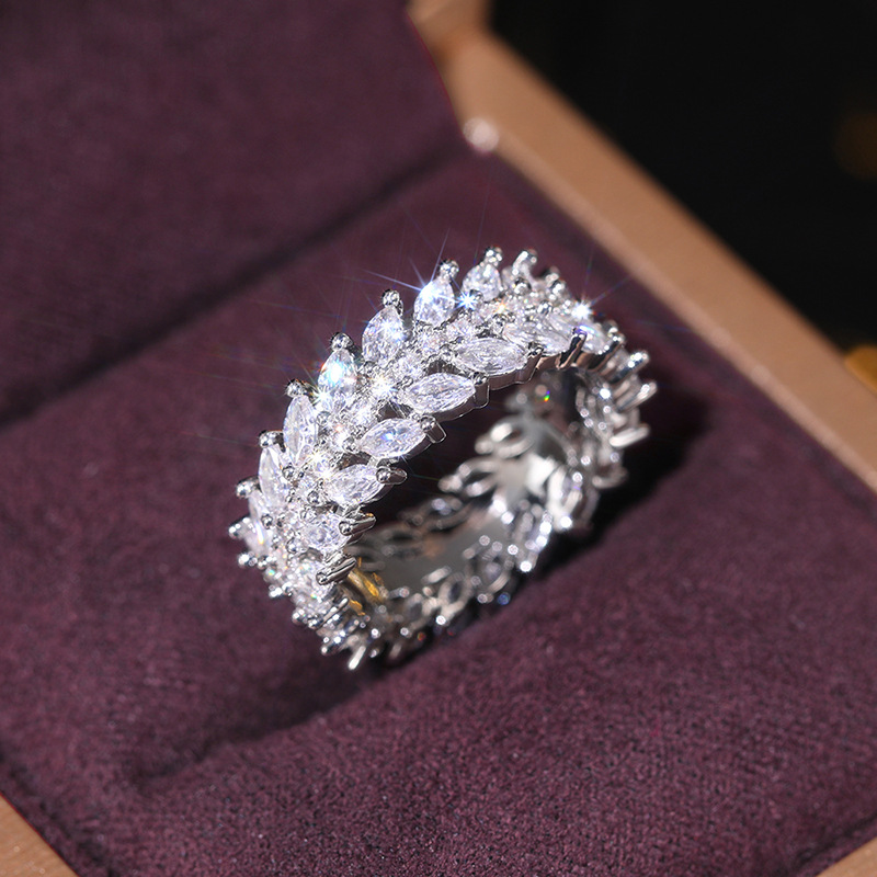 European and American style luxury willow leaf ring cool style full circle dense inlaid index finger ring temperament high-end ring