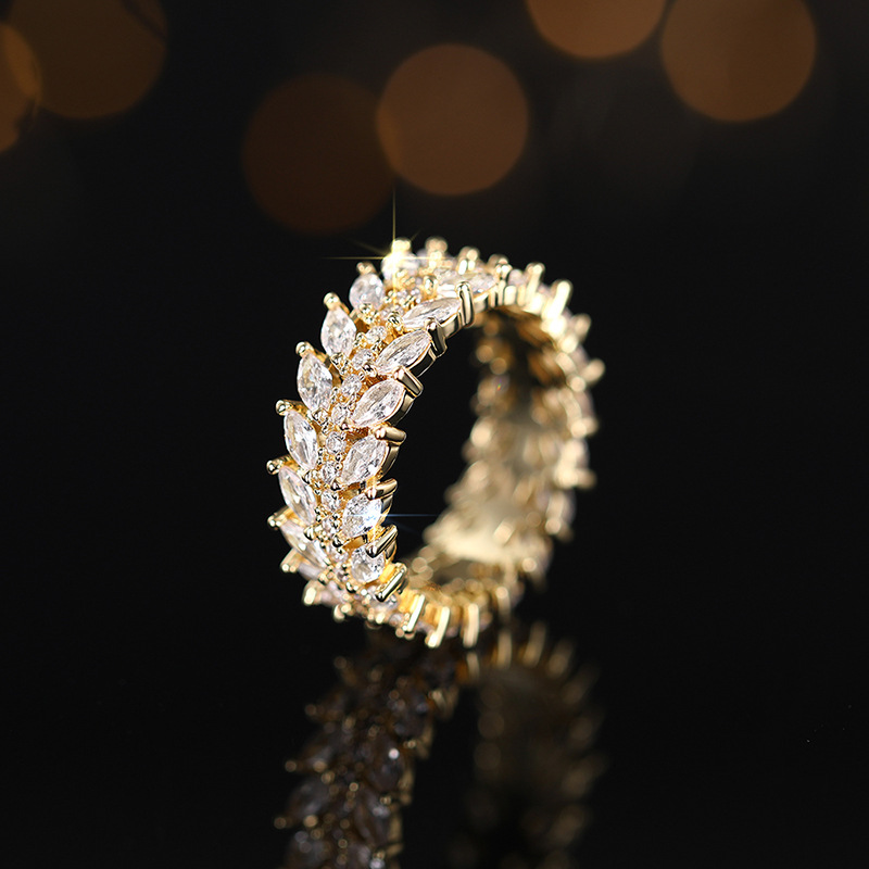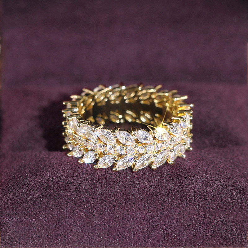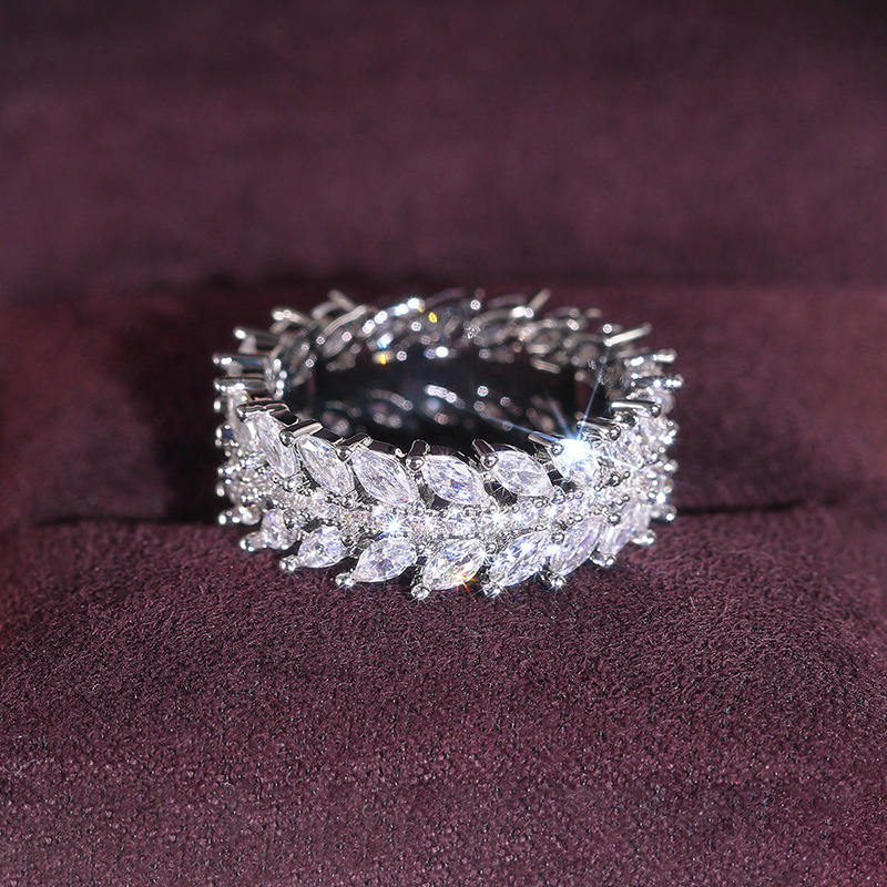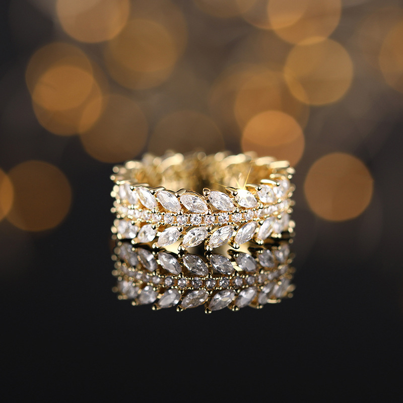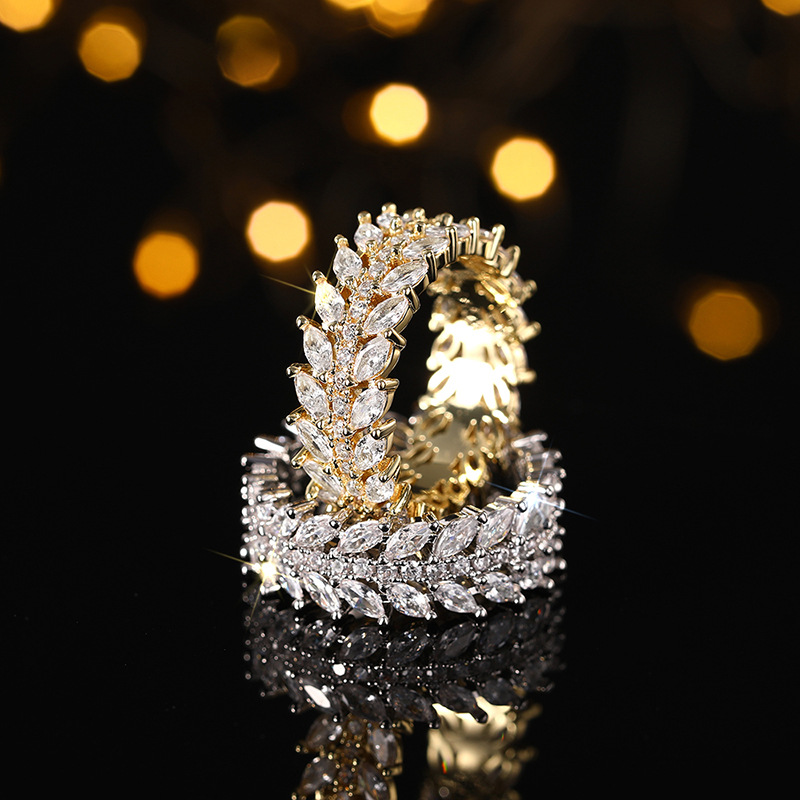 European and American style luxury willow leaf ring cool style full circle dense inlaid index finger ring temperament high-end ring