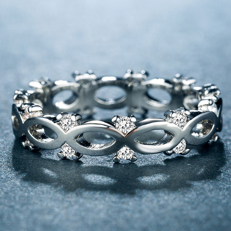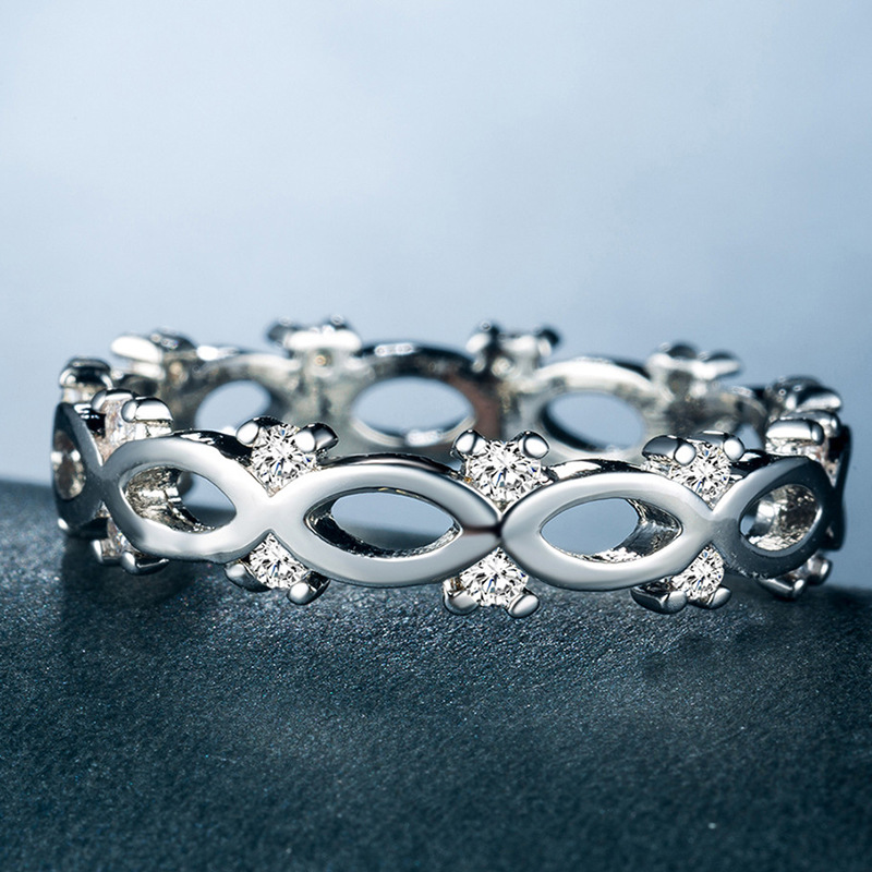 European and American style new hot selling fashion oval hollow zircon ring copper plated silver ladies ring jewelry