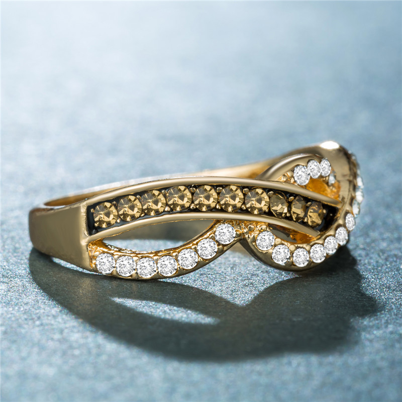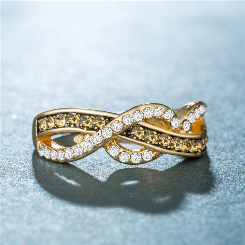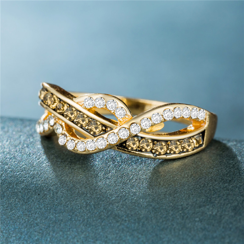 European and American style new retro line wrapped women's ring alloy plated 14k gold crystal zircon jewelry
