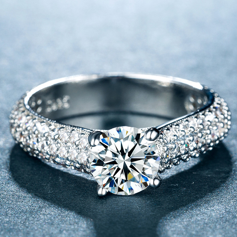 Micro-inlaid celebrity style classic all-match popular ring six-claw zircon wedding ring European and American style light luxury ring