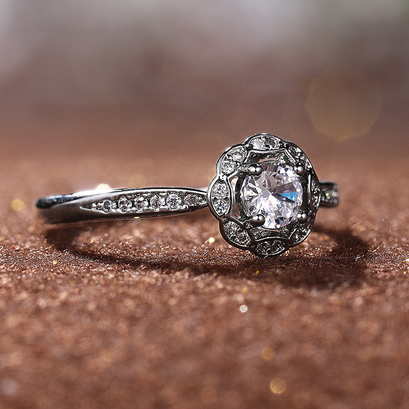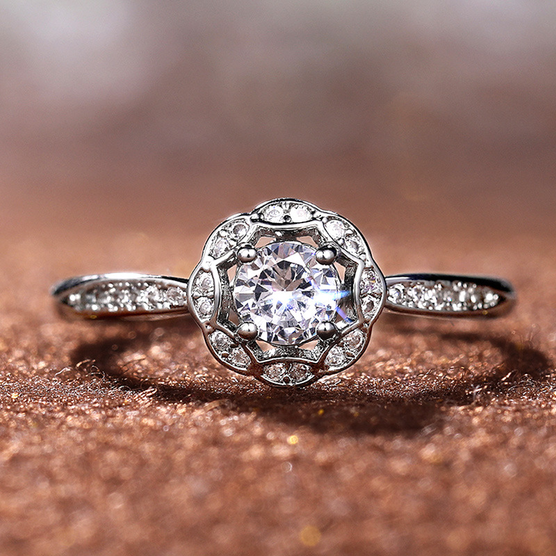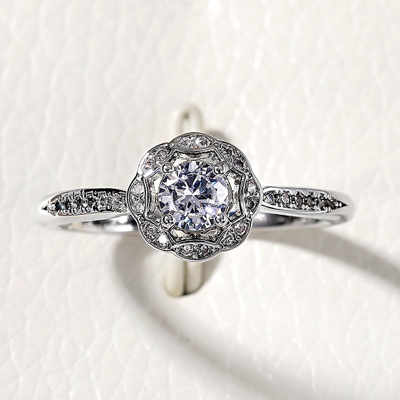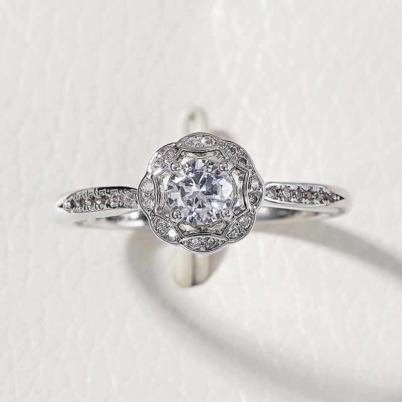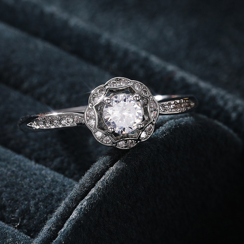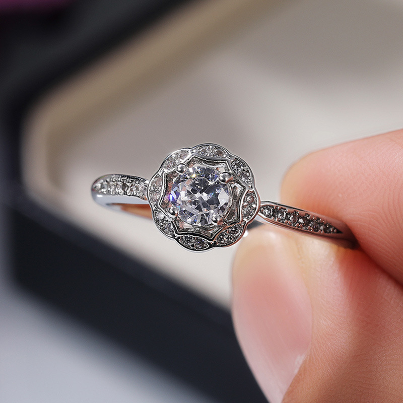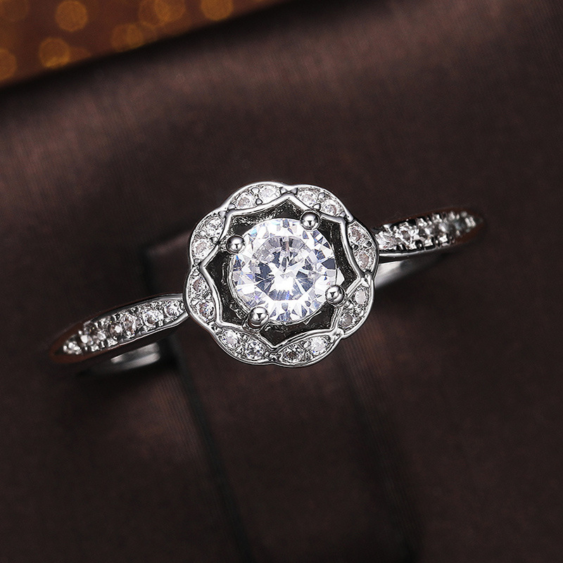 European and American style new simple crystal flower women's ring trendy ring jewelry manufacturers wholesale