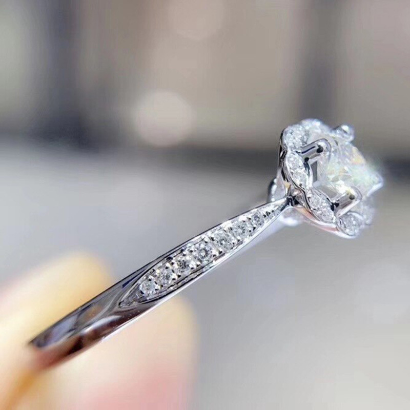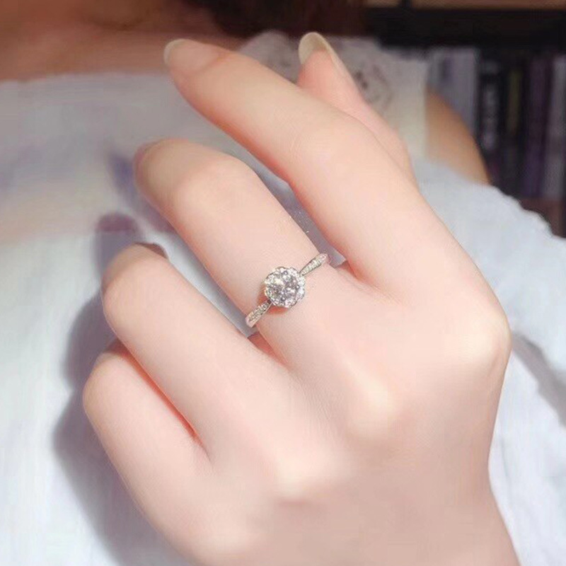 Micro-inlaid celebrity style classic all-match popular ring six-claw zircon wedding ring European and American style light luxury ring