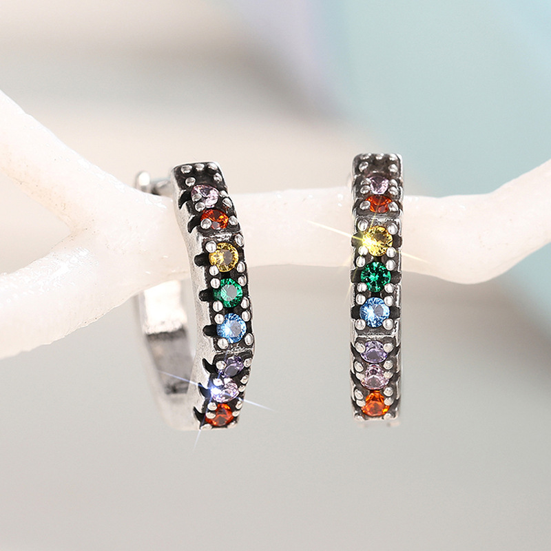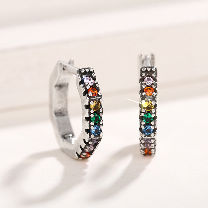 Simple and fashionable colorful zircon heart earrings European and American style exquisite small earrings light luxury temperament earrings female era242