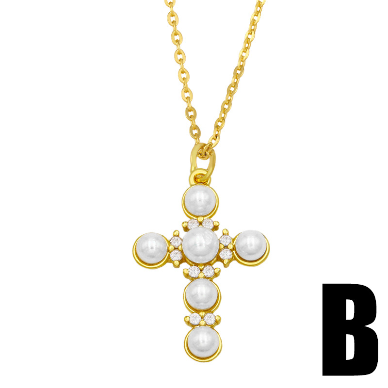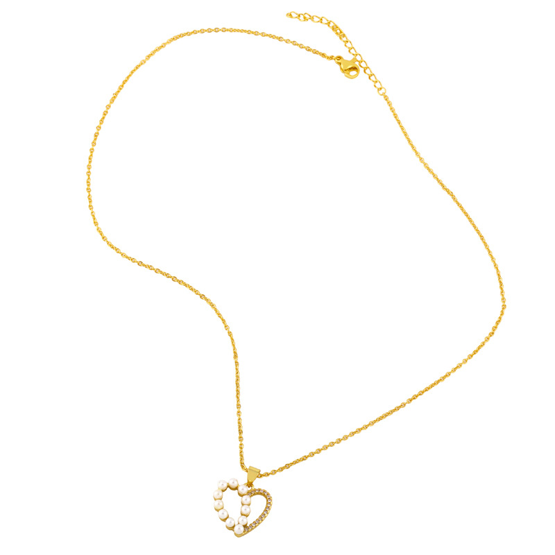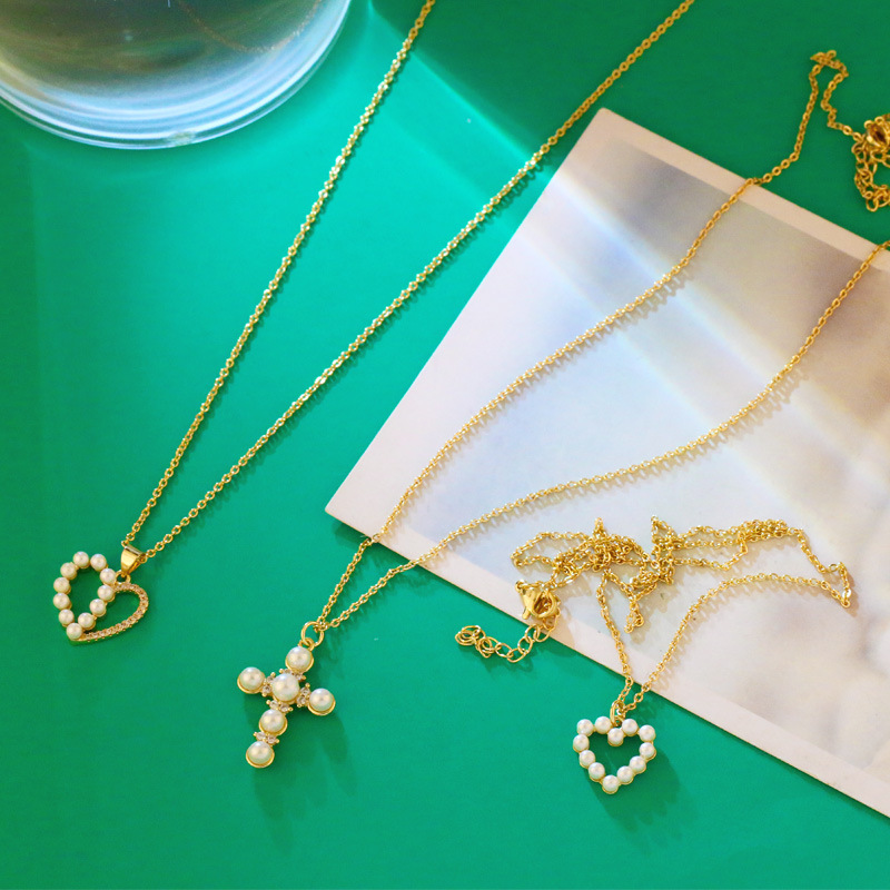 European and American style niche design pearl heart necklace female simple personality temperament cross clavicle chain nkv72