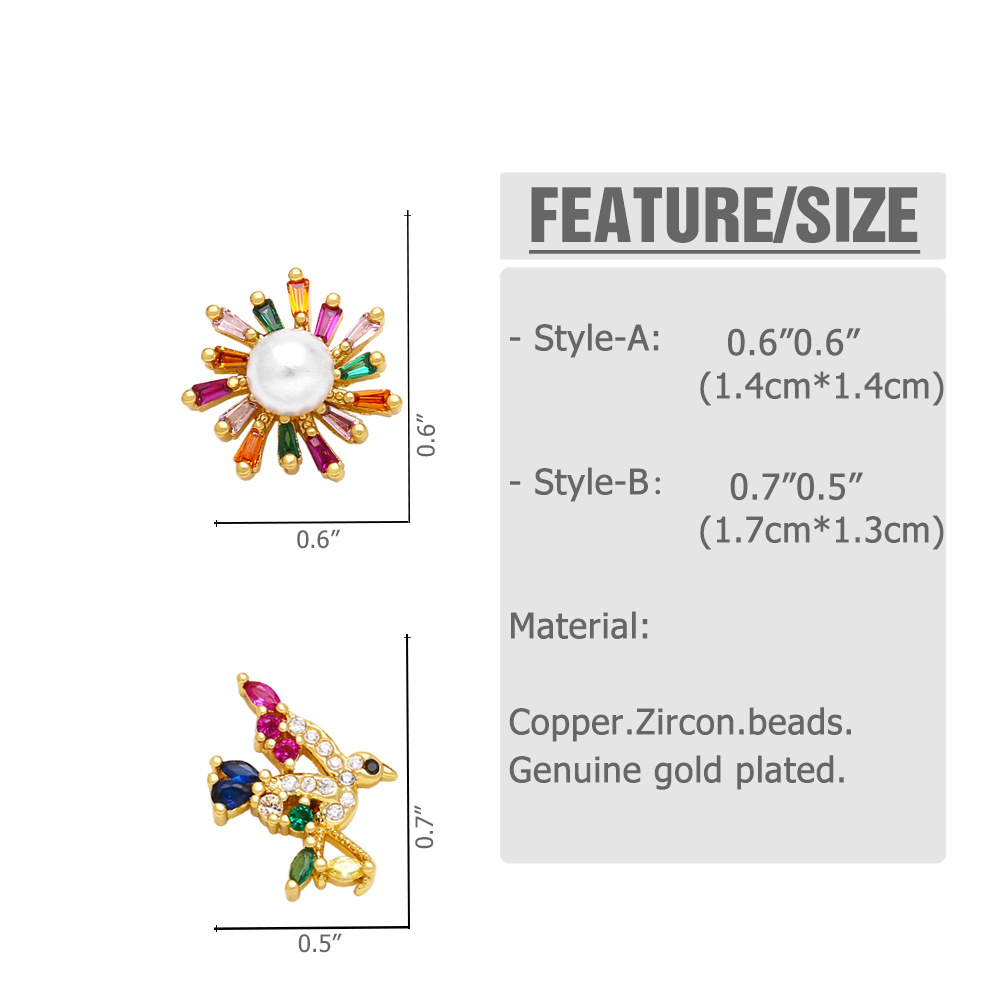 European and American style personality inlaid with colorful zircon pearl flower earrings women's trendy bird earrings wholesale erq27