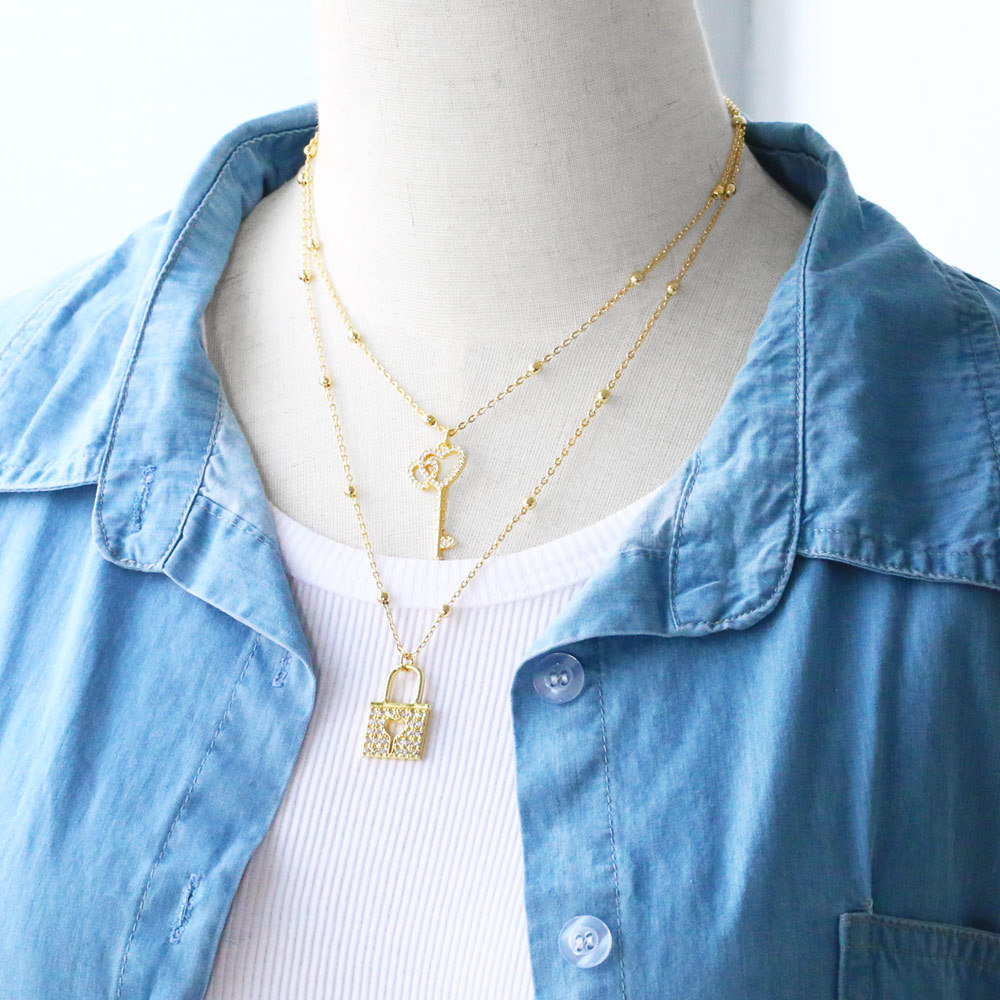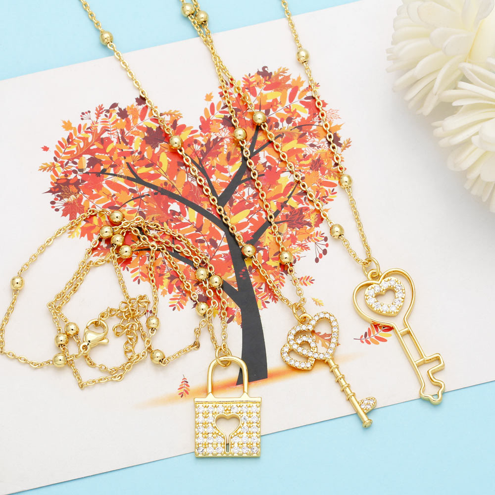 European and American style popular simple heart-shaped key lock pendant necklace female temperament light luxury clavicle necklace nks65