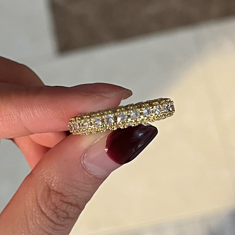 European and American style simple three-sided zircon design couple ring personality hip-hop ring