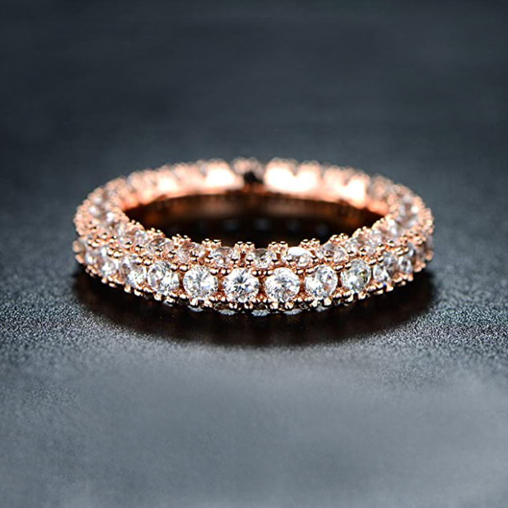 Classic four-claw imitation zircon micro-inlaid ring women's double row two-color twist arm ring engagement wedding ring women