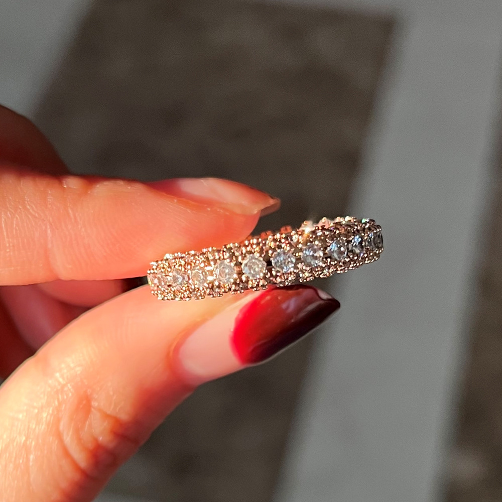 Micro-inlaid celebrity style classic all-match popular ring six-claw zircon wedding ring European and American style light luxury ring