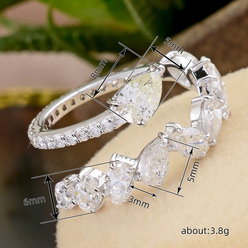 European and American teardrop-shaped ring fashionable and shiny design ring light luxury style popular three-claw inlaid jewelry for women