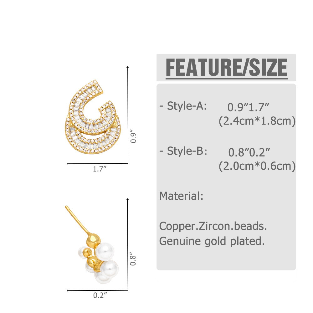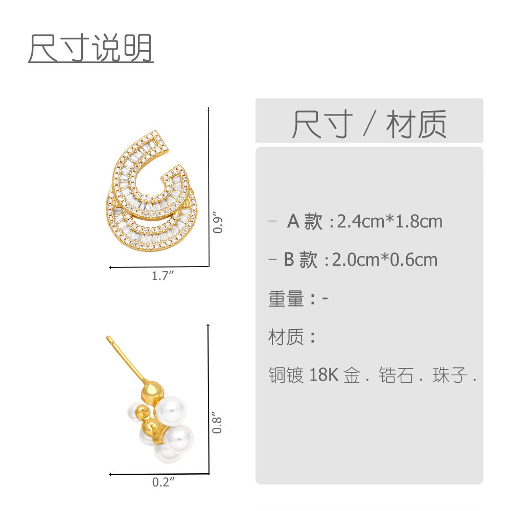 European and American temperament C-shaped pearl earrings for women high-end irregular zircon earrings niche all-match earrings era311