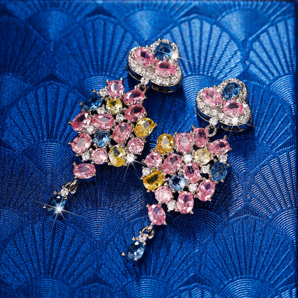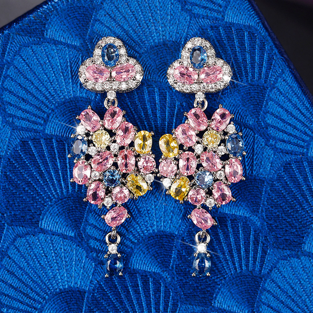 European and American temperament colorful zircon flower earrings exquisite three-dimensional camellia earrings new arrival