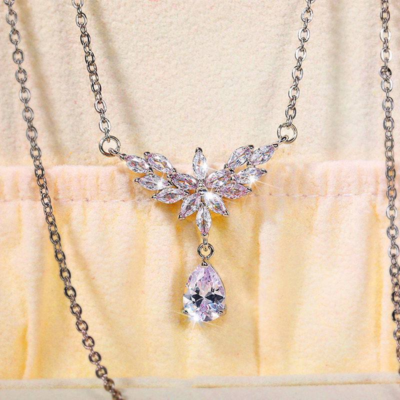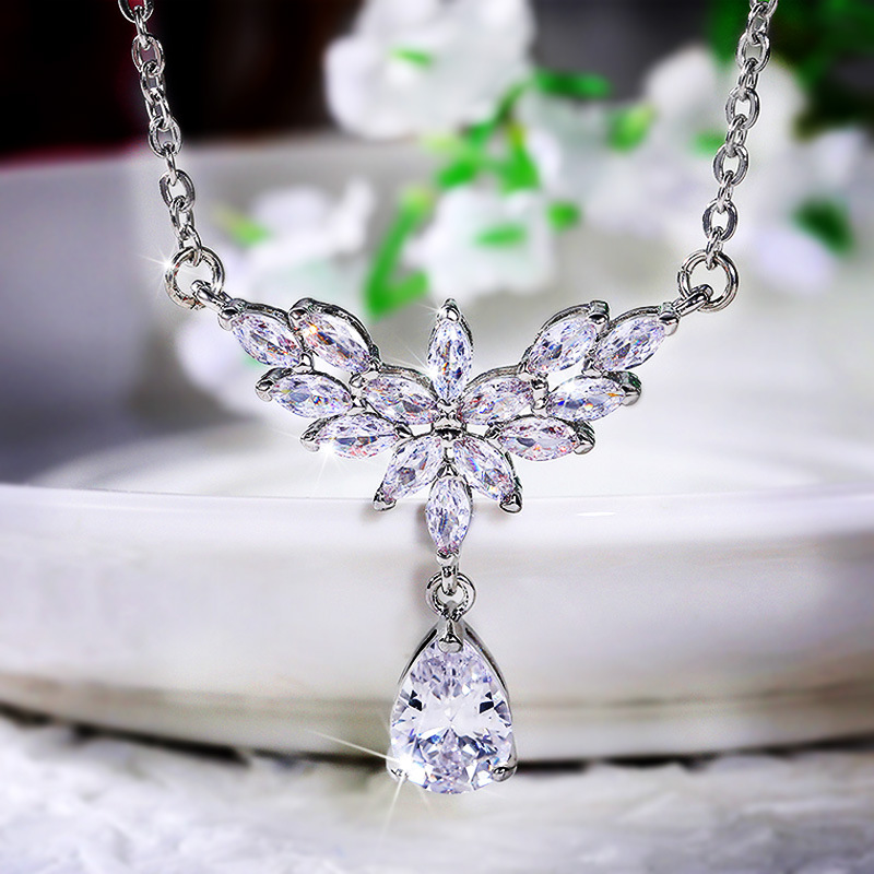 European and American trend new exquisite pear-shaped teardrop pendant necklace female bride wedding evening necklace