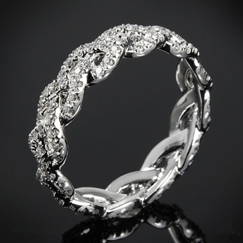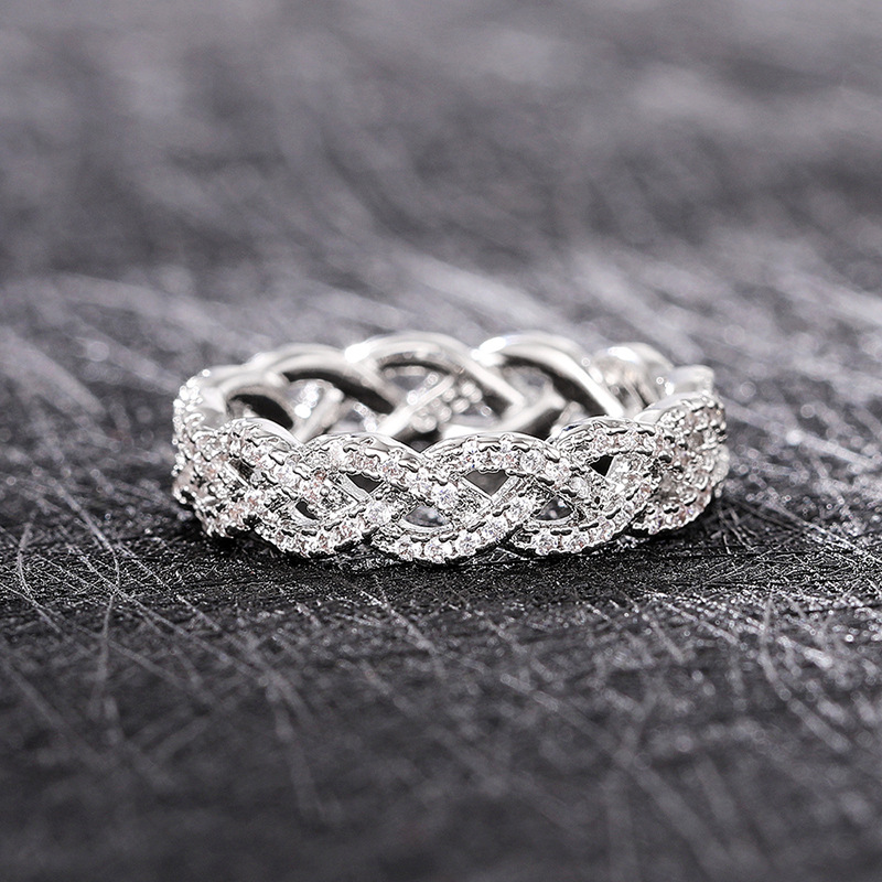 Classic four-claw imitation zircon micro-inlaid ring women's double row two-color twist arm ring engagement wedding ring women