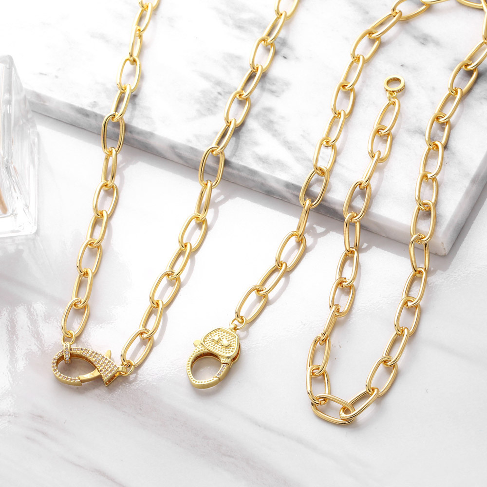 European and American trendy exaggerated hip-hop necklace style niche design diamond-studded metal thick chain necklace for women nka014