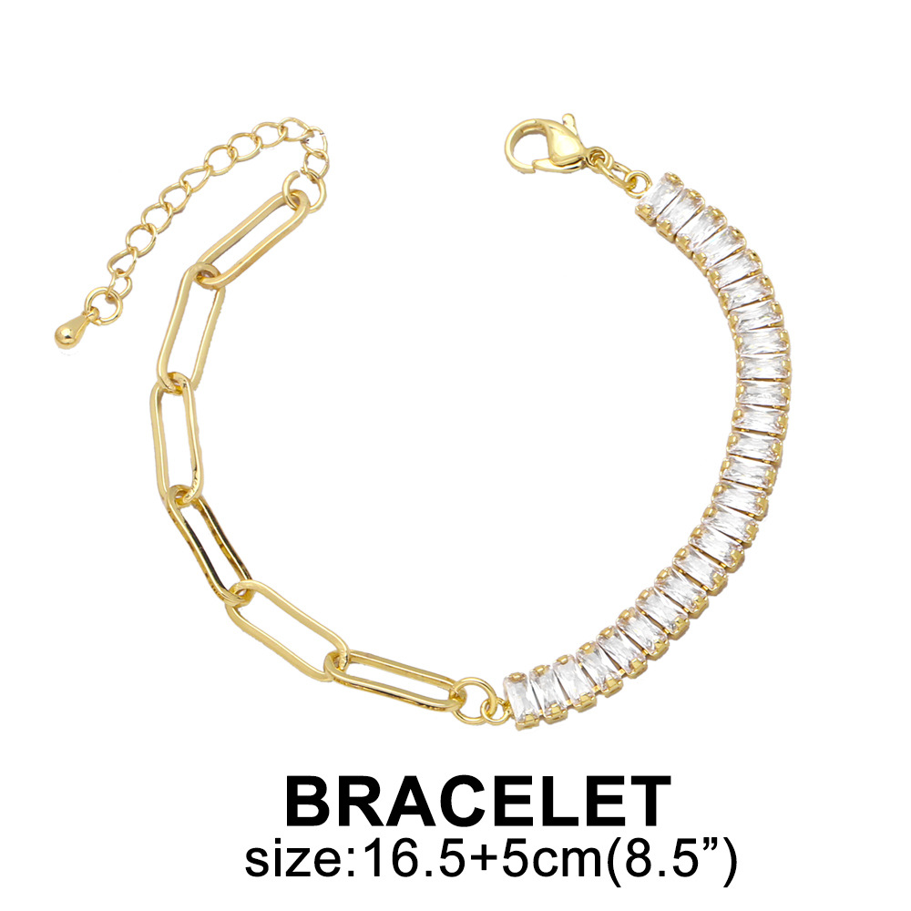 European and American trendy jewelry fashion net red cold style zircon splicing chain necklace bracelet set nkb027
