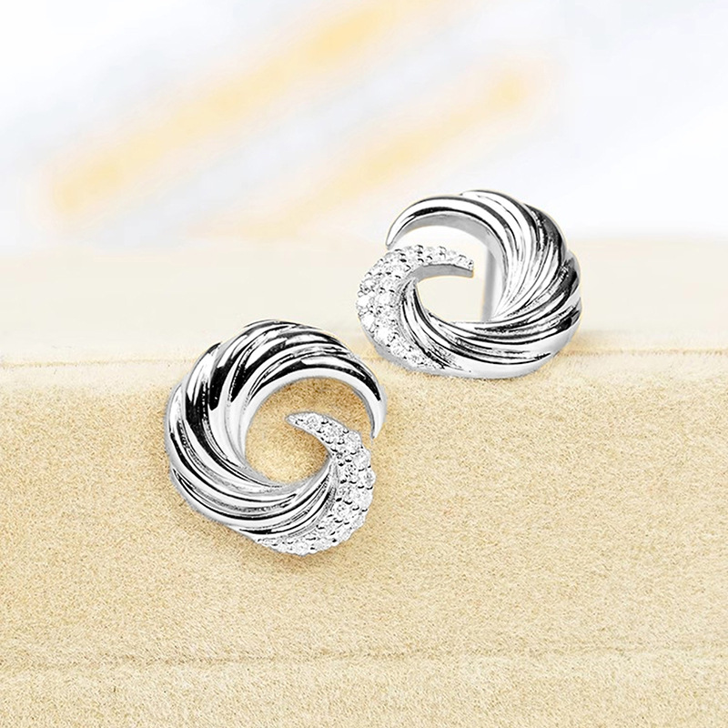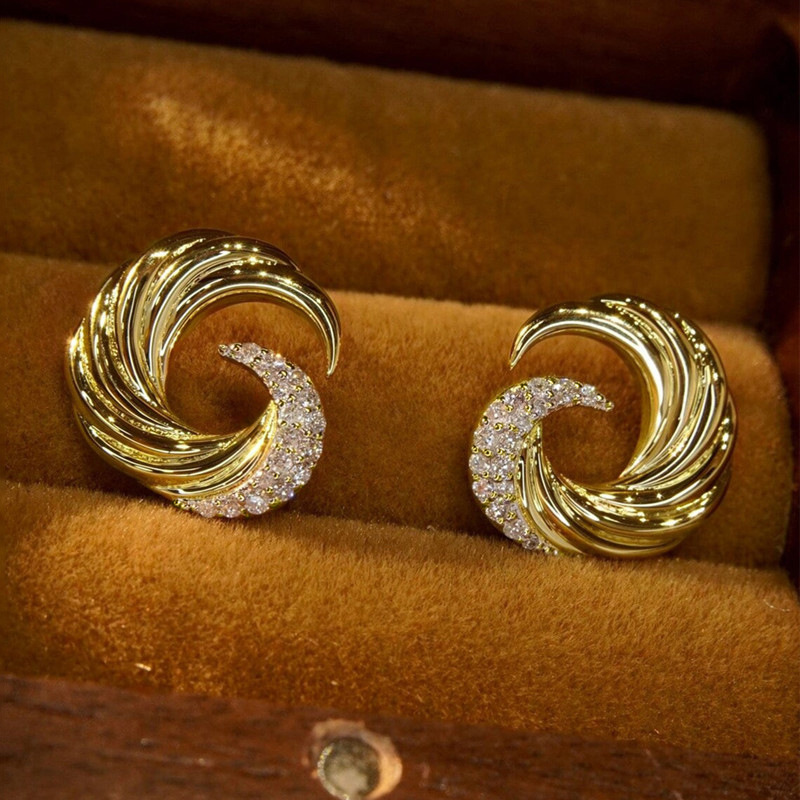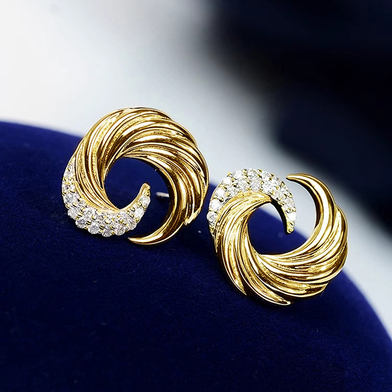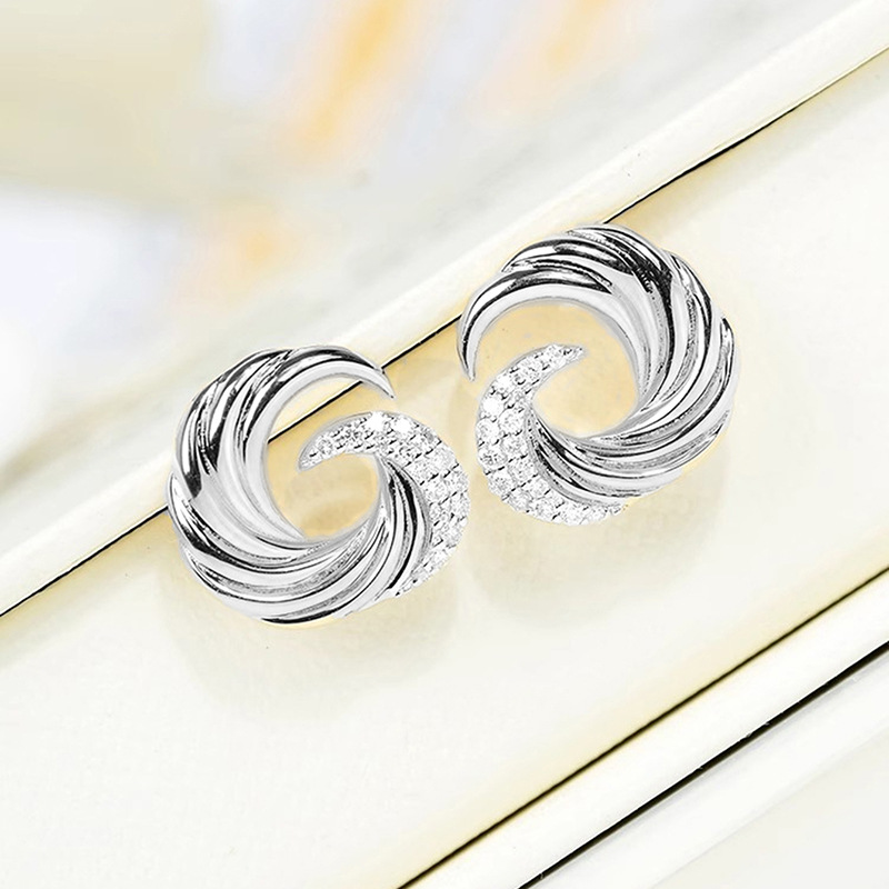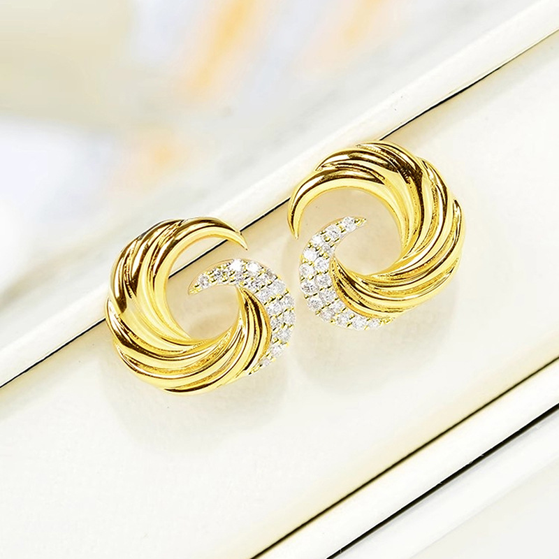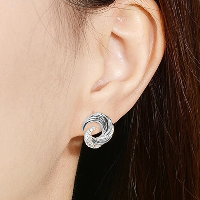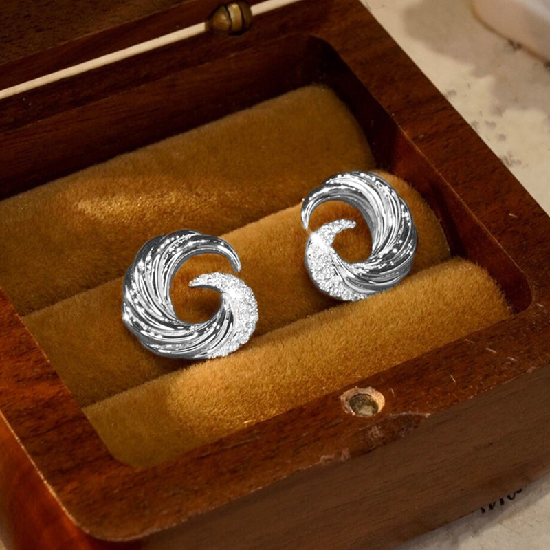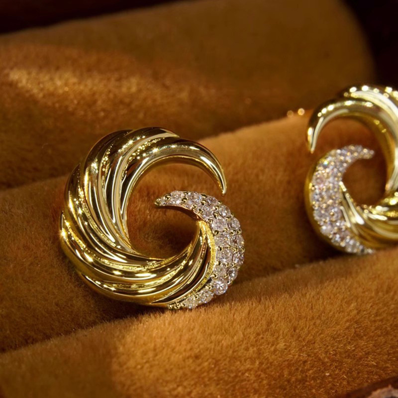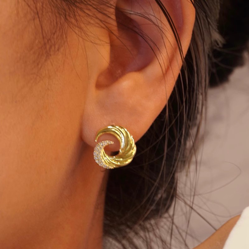 European and American wave earrings for women, fashionable design, popular earrings, micro-inlaid zircon, popular earrings