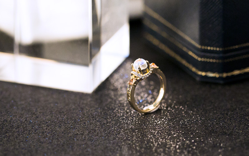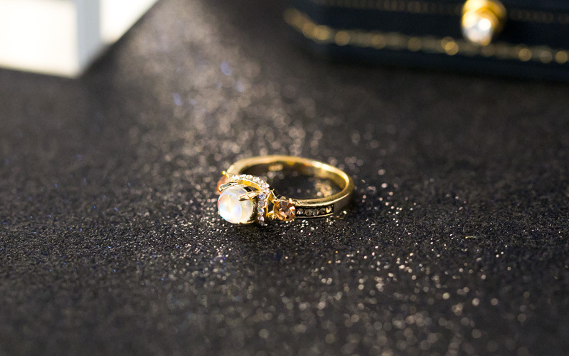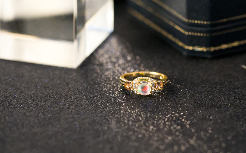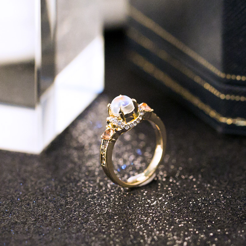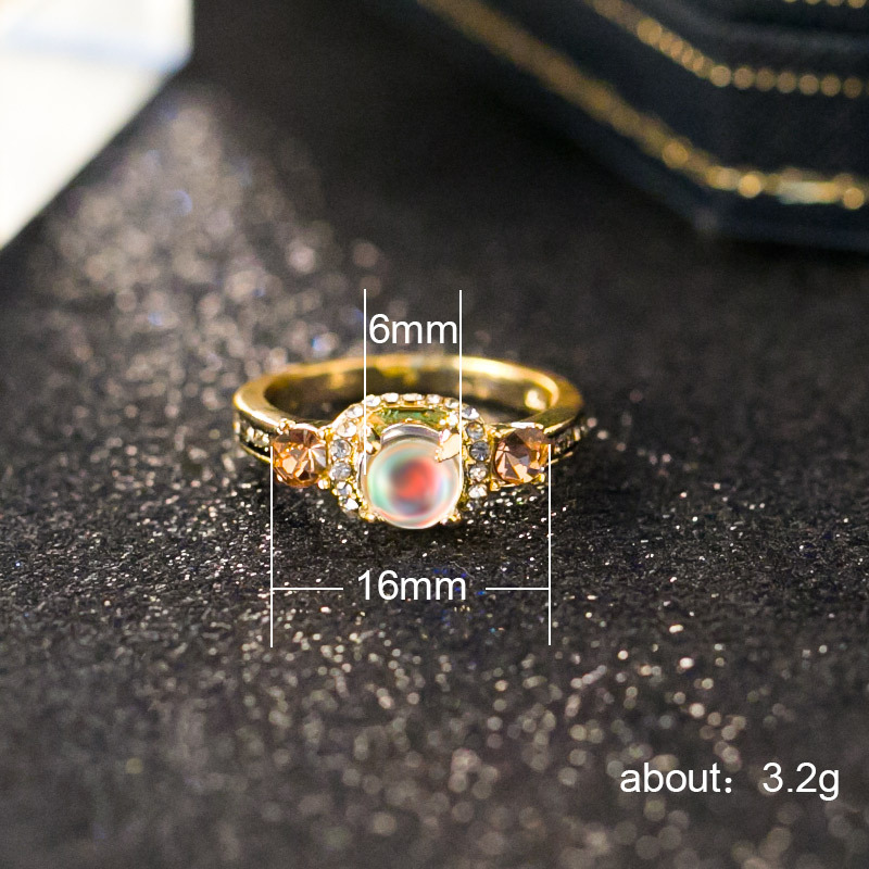 European and American women's ring retro style moonstone ring alloy electroplating inlaid crystal jewelry factory wholesale
