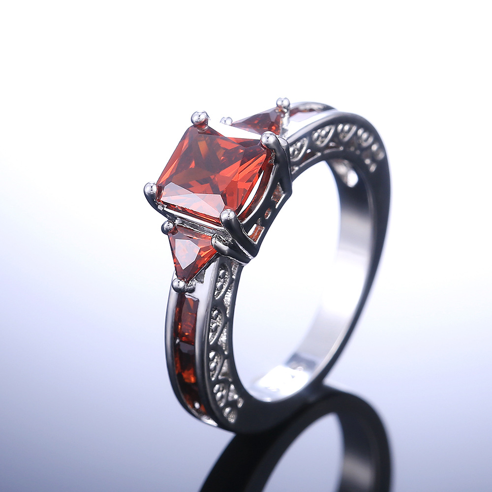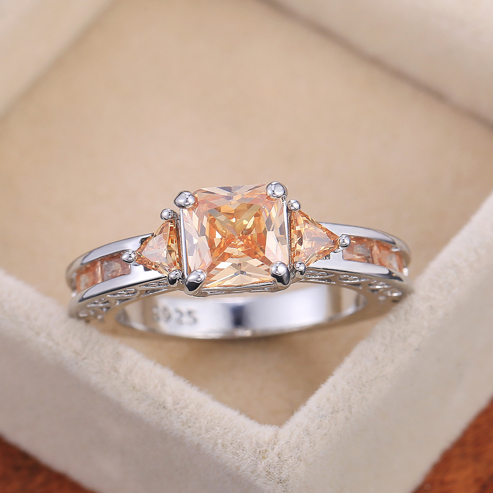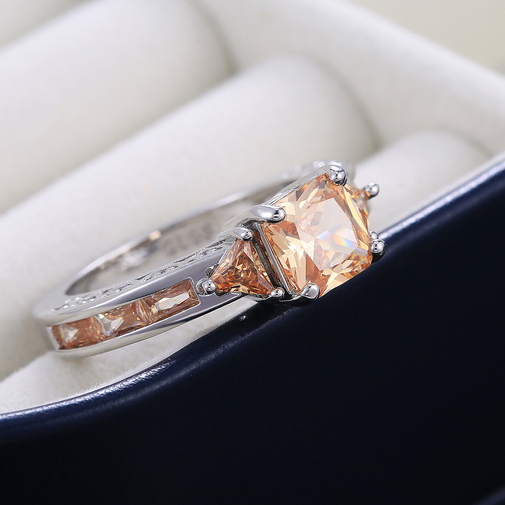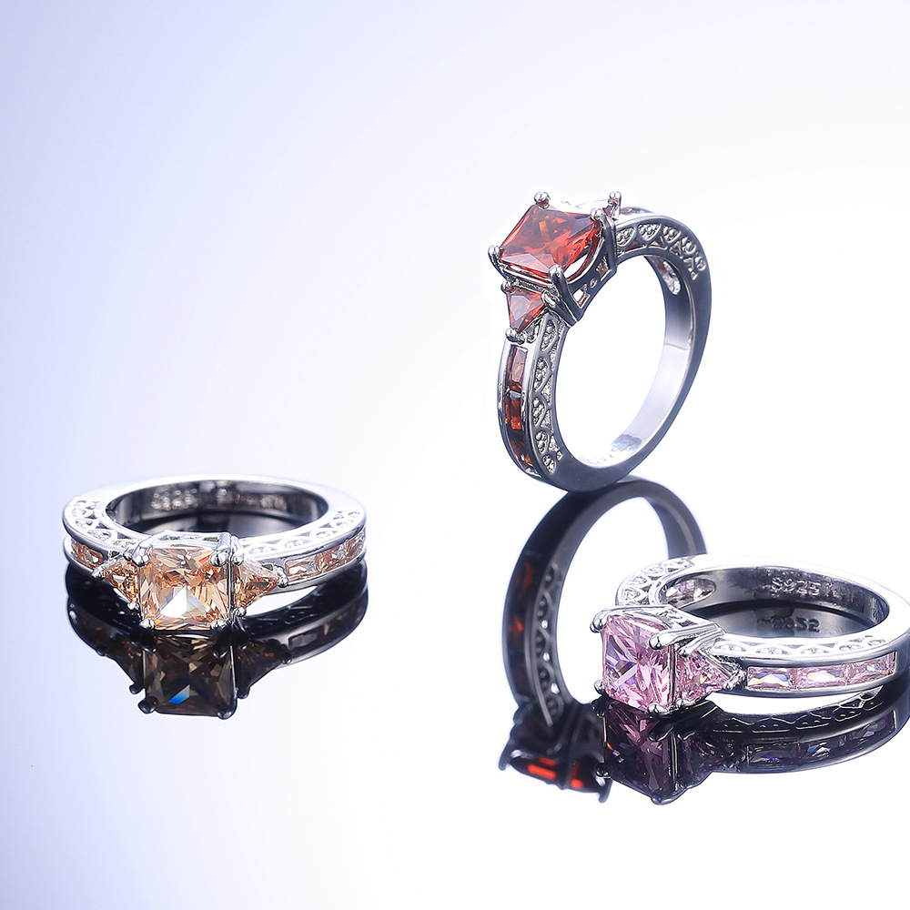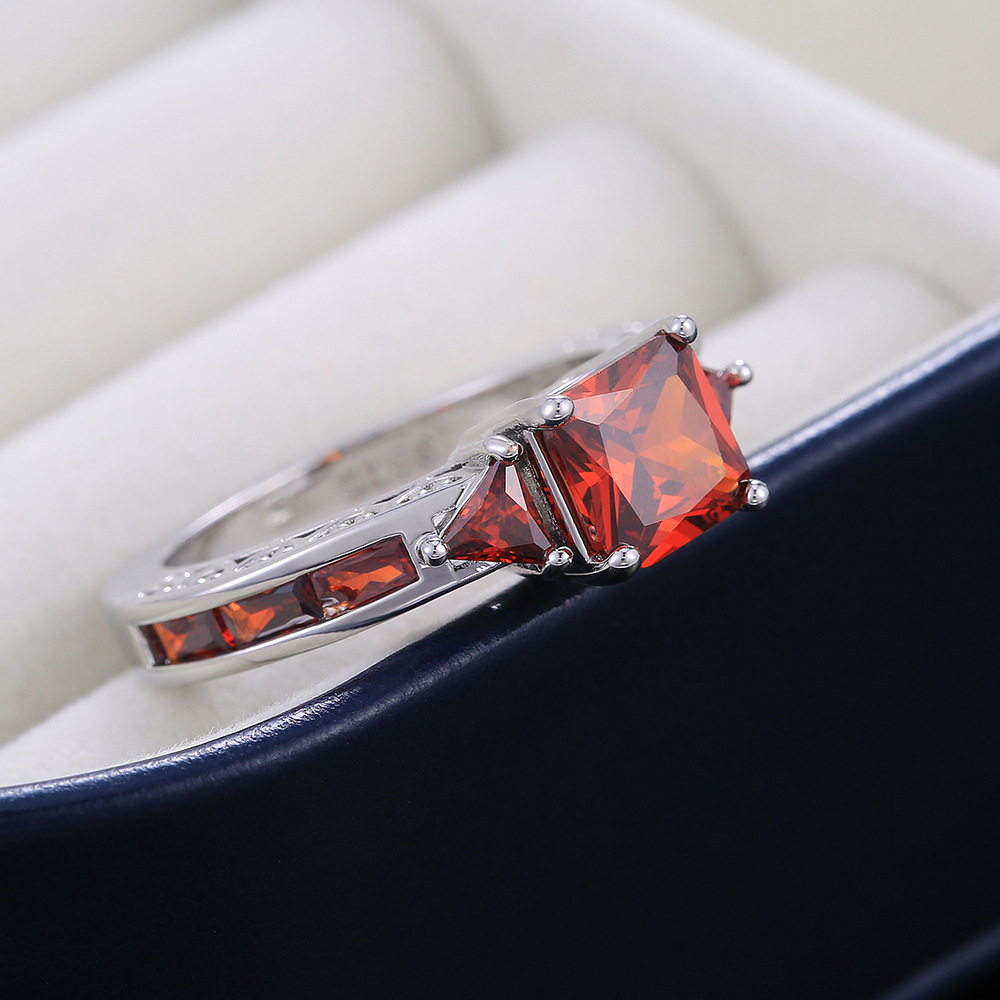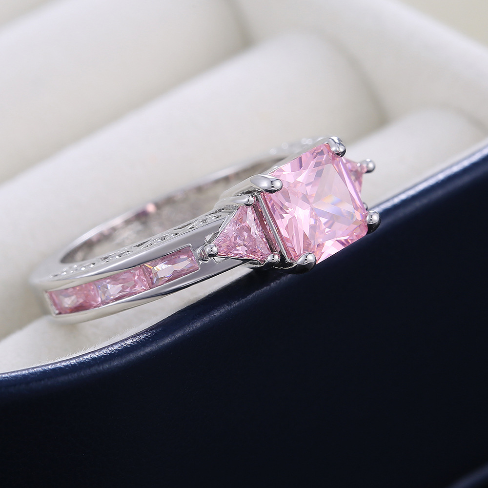 Hot selling new princess square ring European and American hot style inlaid zircon women's jewelry engagement proposal ring
