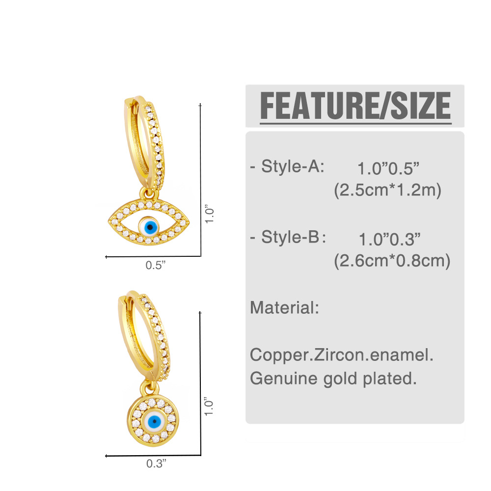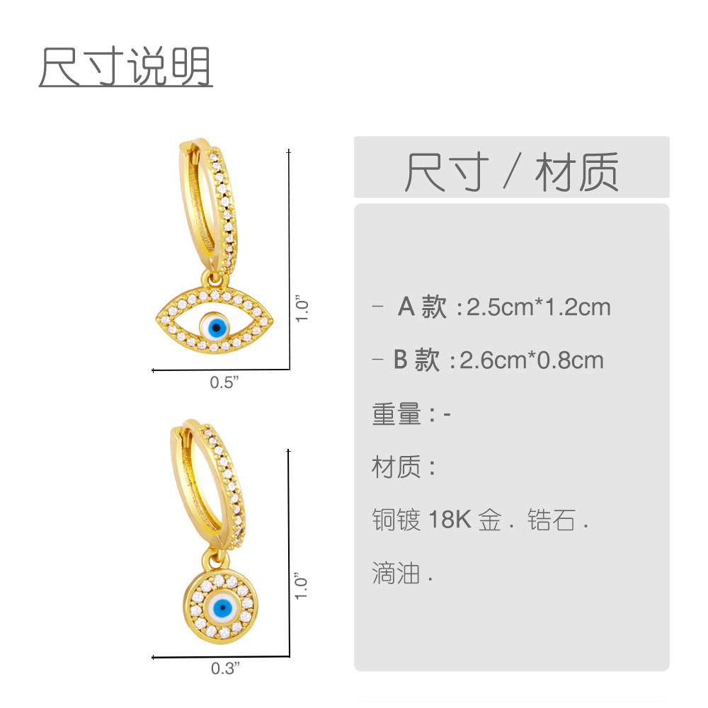 European and American zircon earrings geometric round blue devil's eye simple and generous earrings female ery55