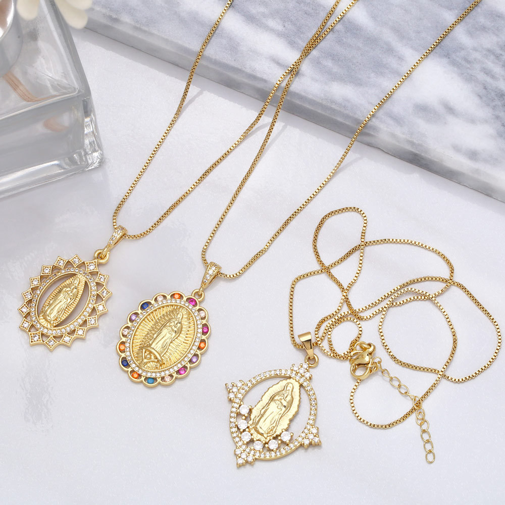 European and American zircon Virgin Mary necklace pendant personalized diamond men and women hip-hop accessories wholesale nkb087