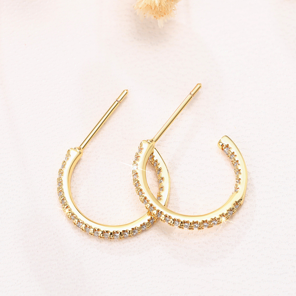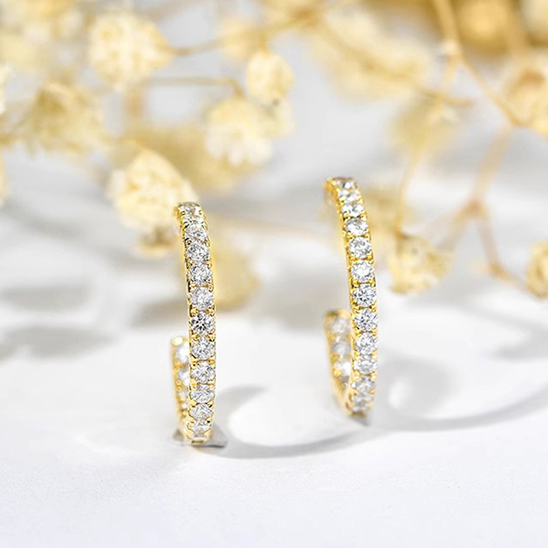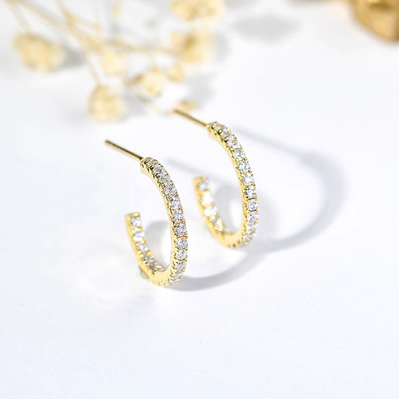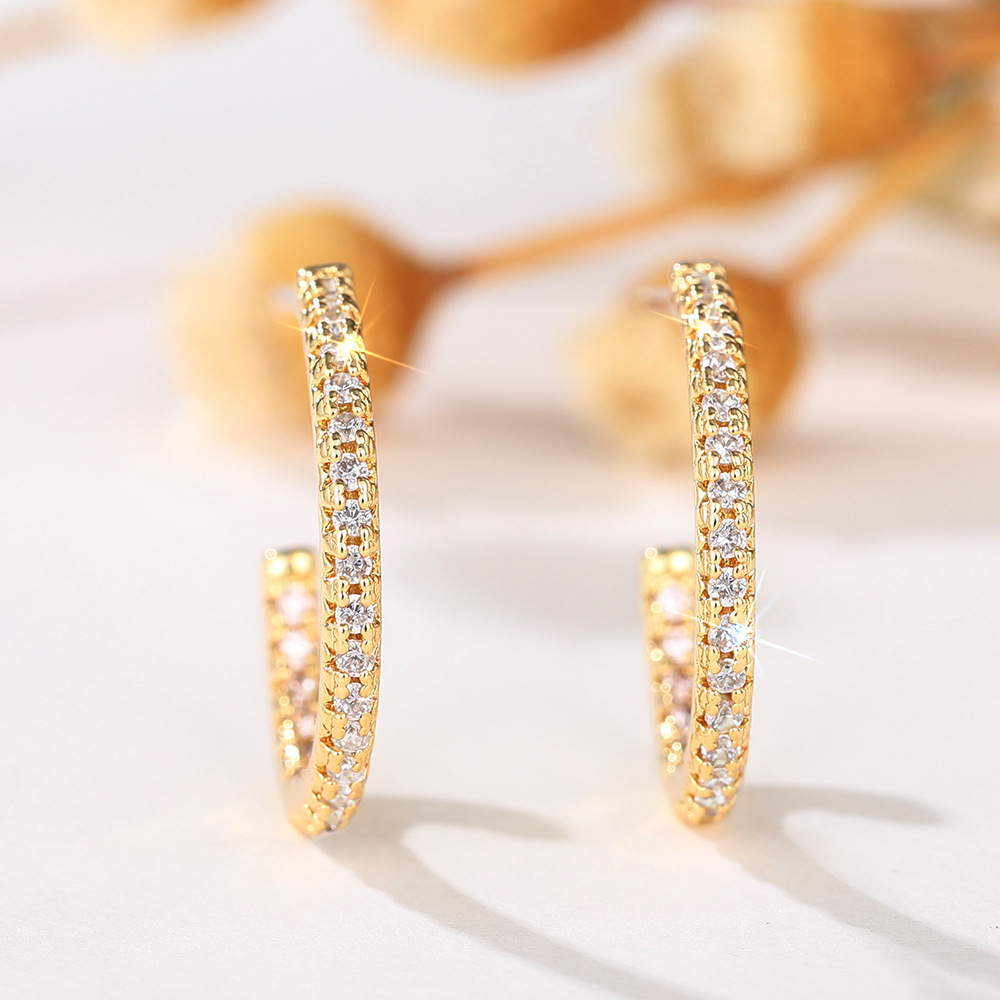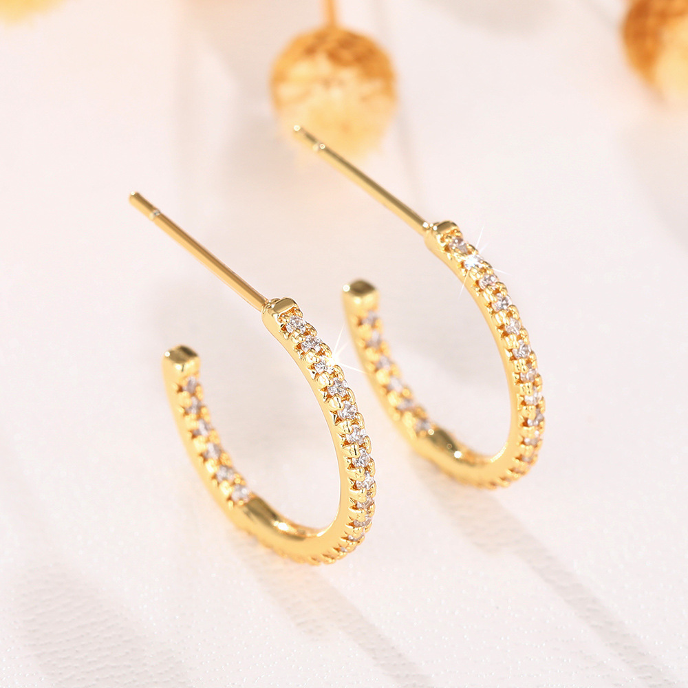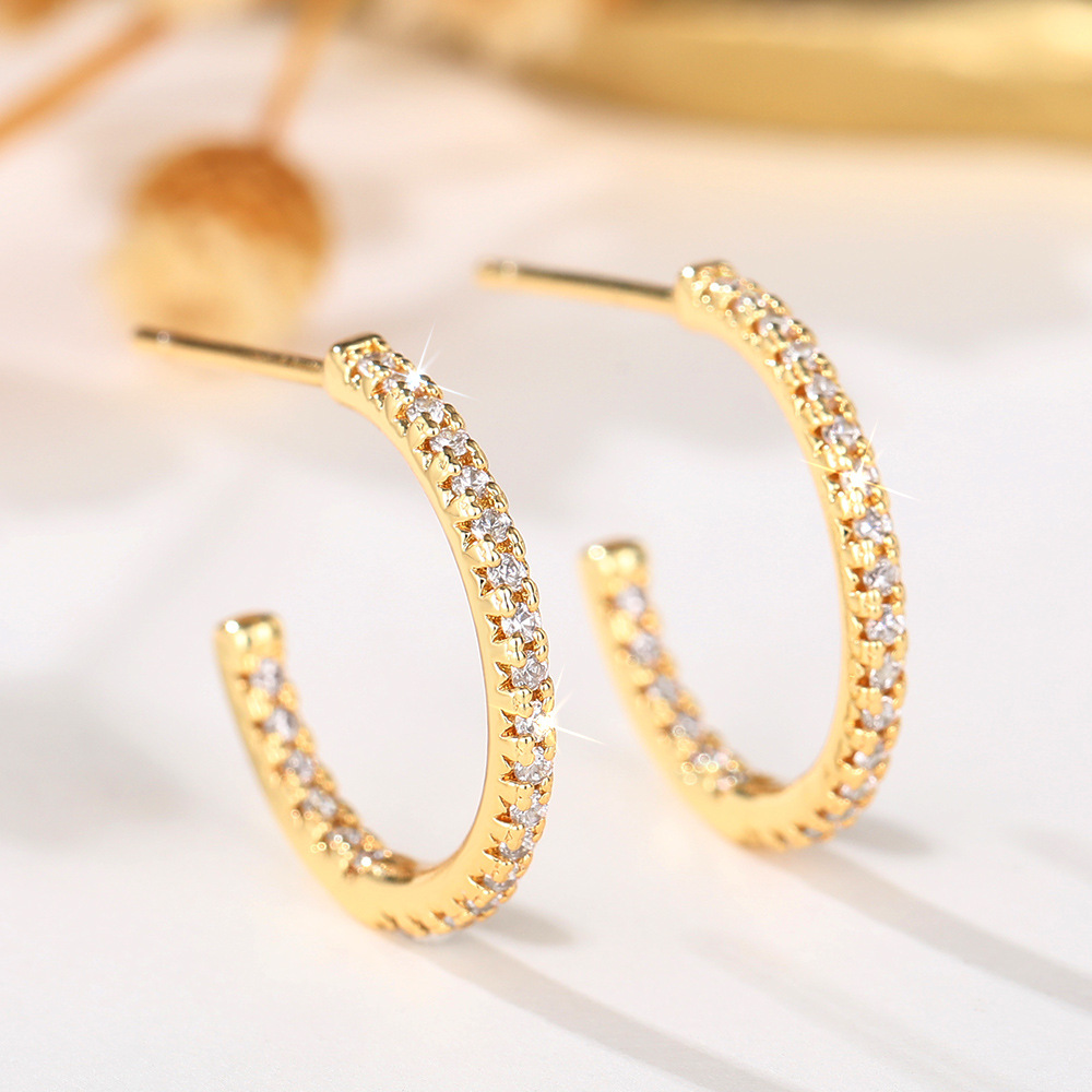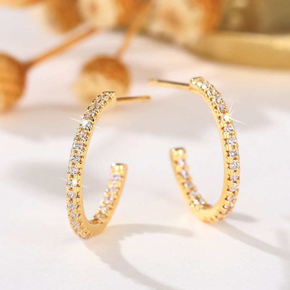 European and Korean commuter full inlaid exquisite earrings for women simple hoop design earrings fashionable zircon daily accessories