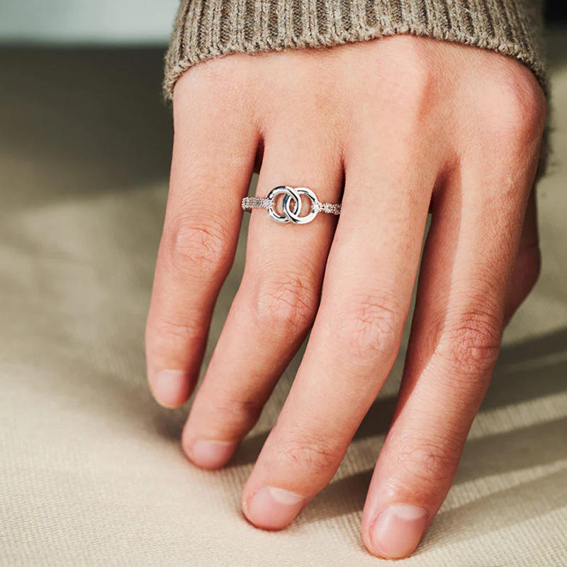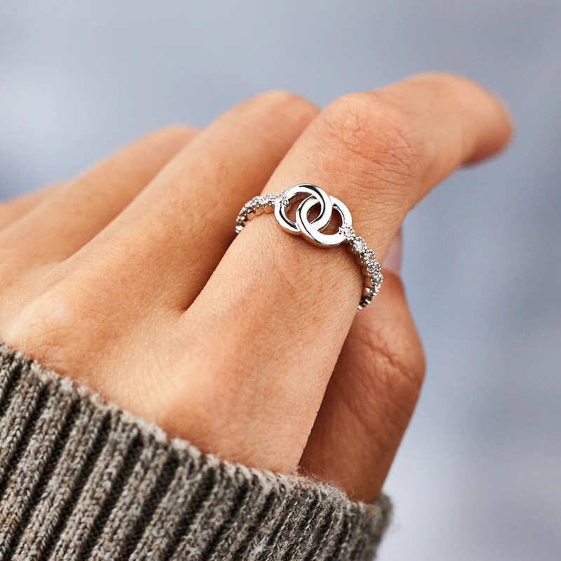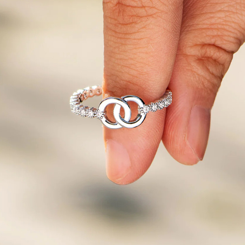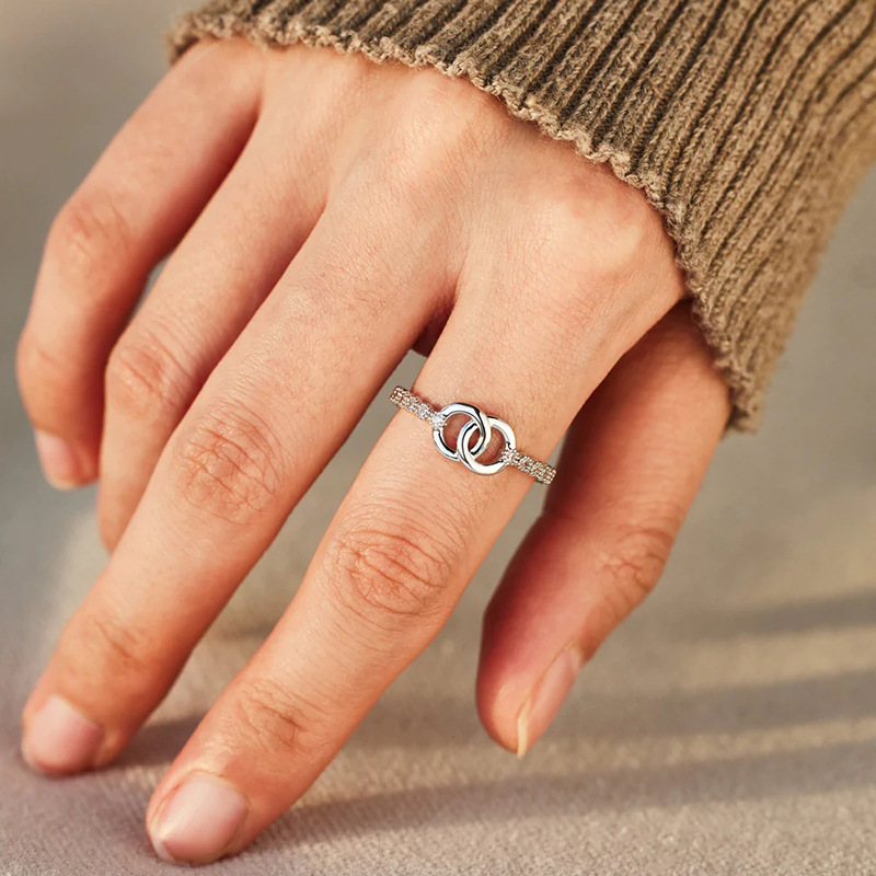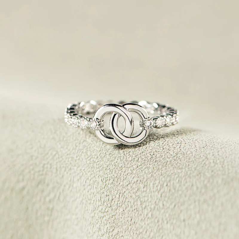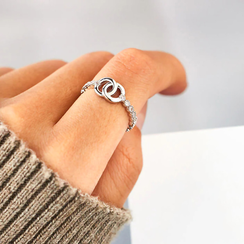European and Korean fashion simple ring for women micro-inlaid shiny exquisite ring buckle beautiful meaning gift