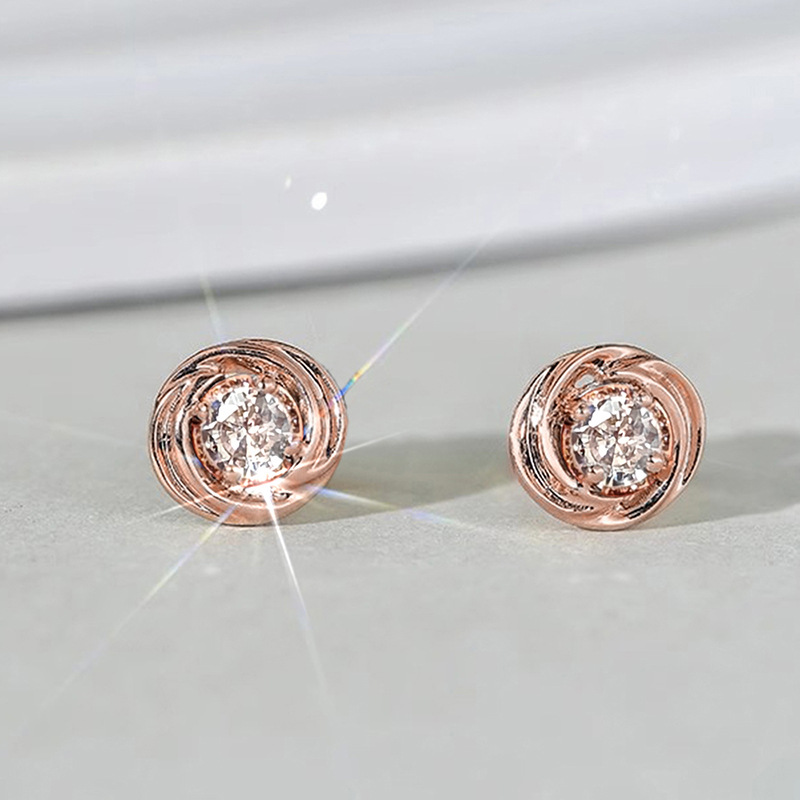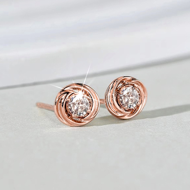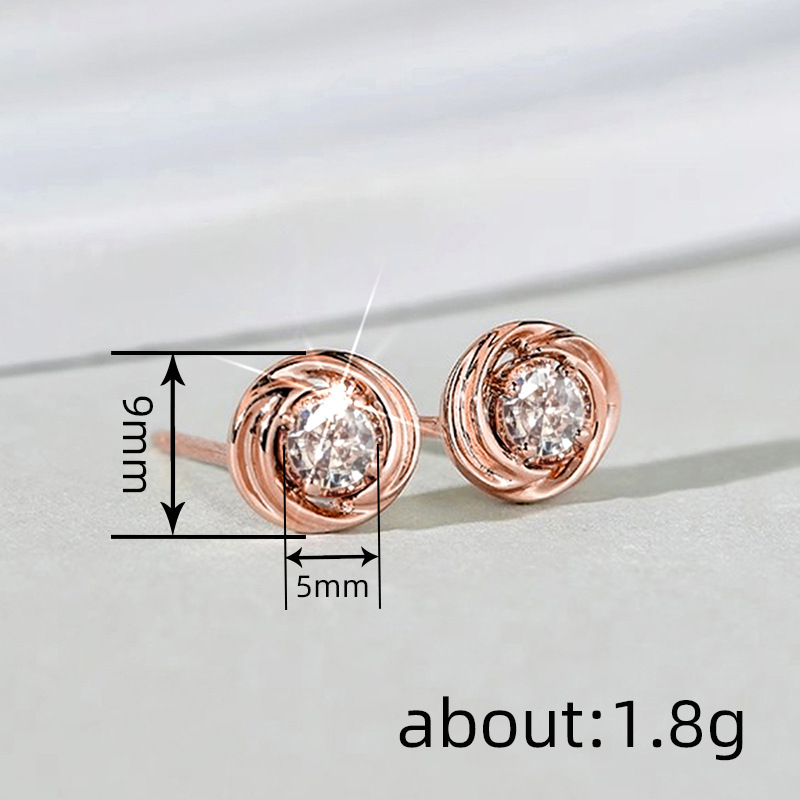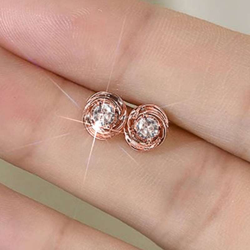 European and Korean inlaid zircon earrings for women, exquisite small round diamond earrings, daily matching whitening jewelry