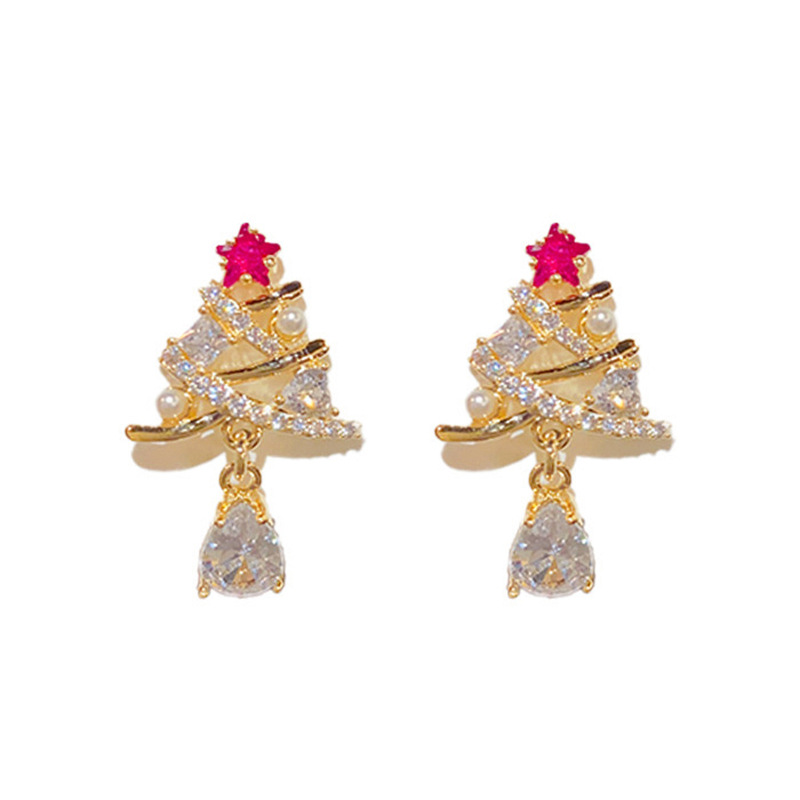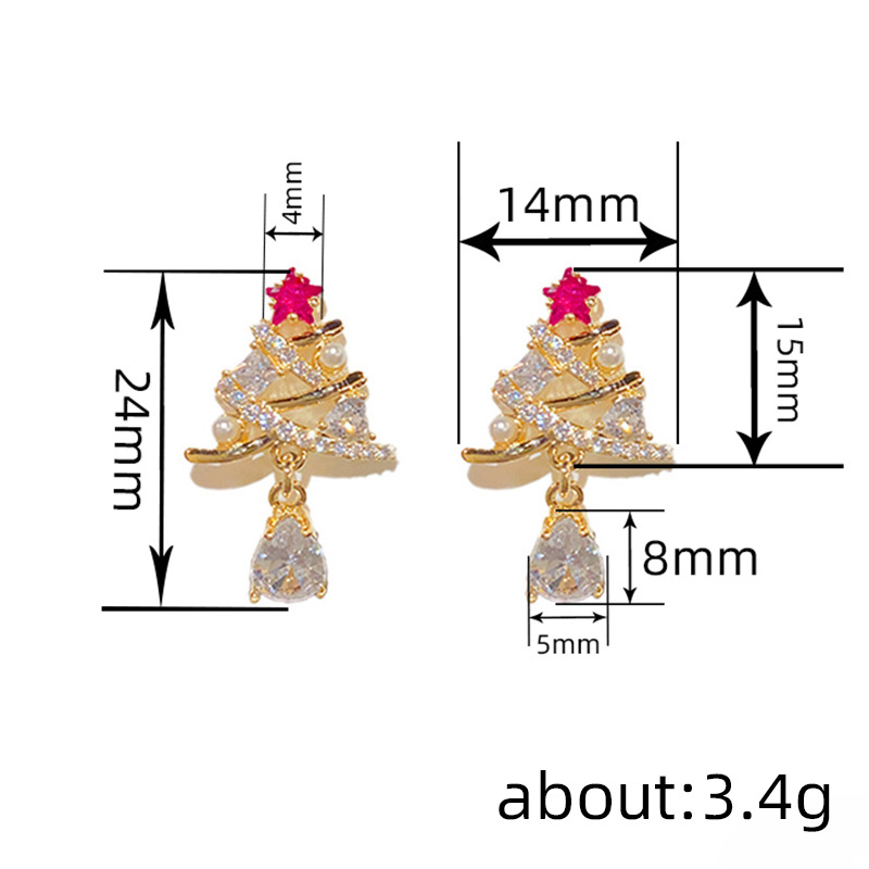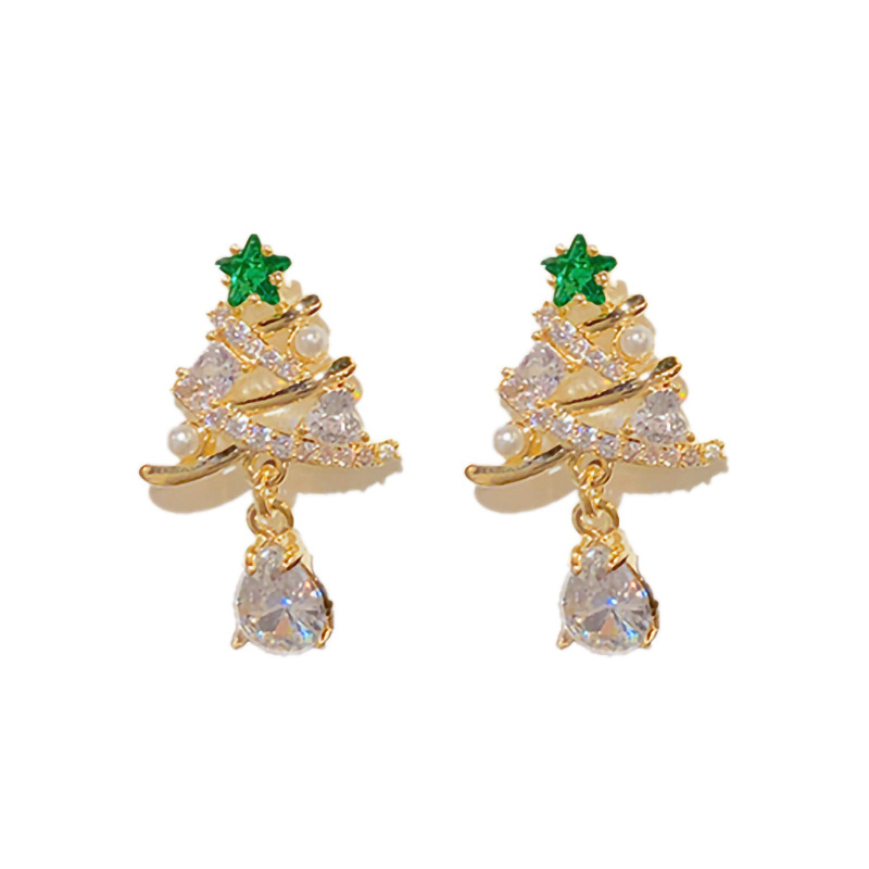 European and Korean light luxury exquisite earrings for women inlaid with zircon Christmas tree earrings fashionable Christmas trend hot items