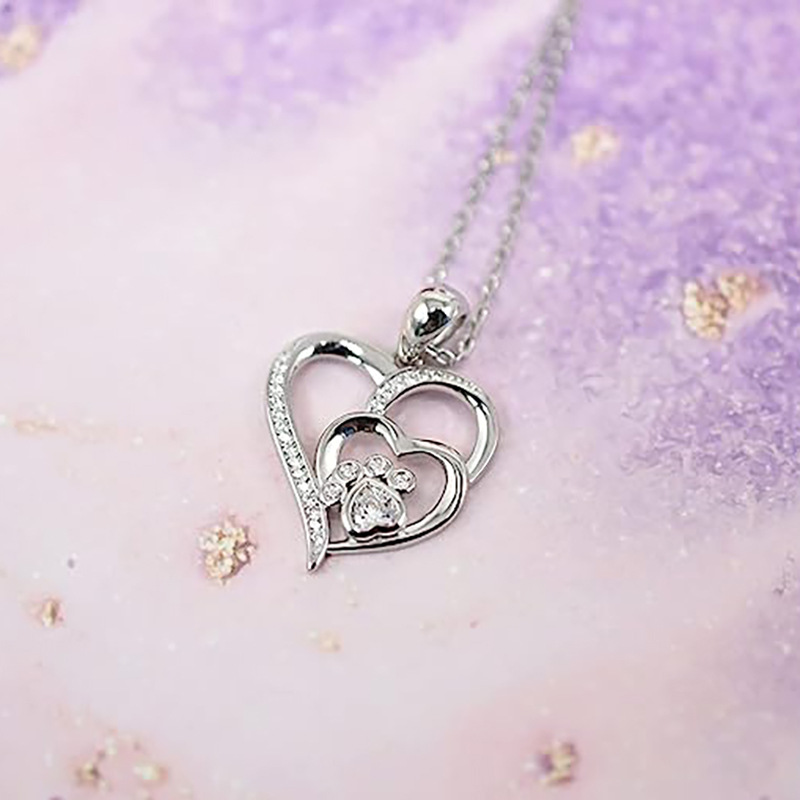 European and Korean sweet cat claw heart necklace double peach heart zircon design pendant jewelry hot sale