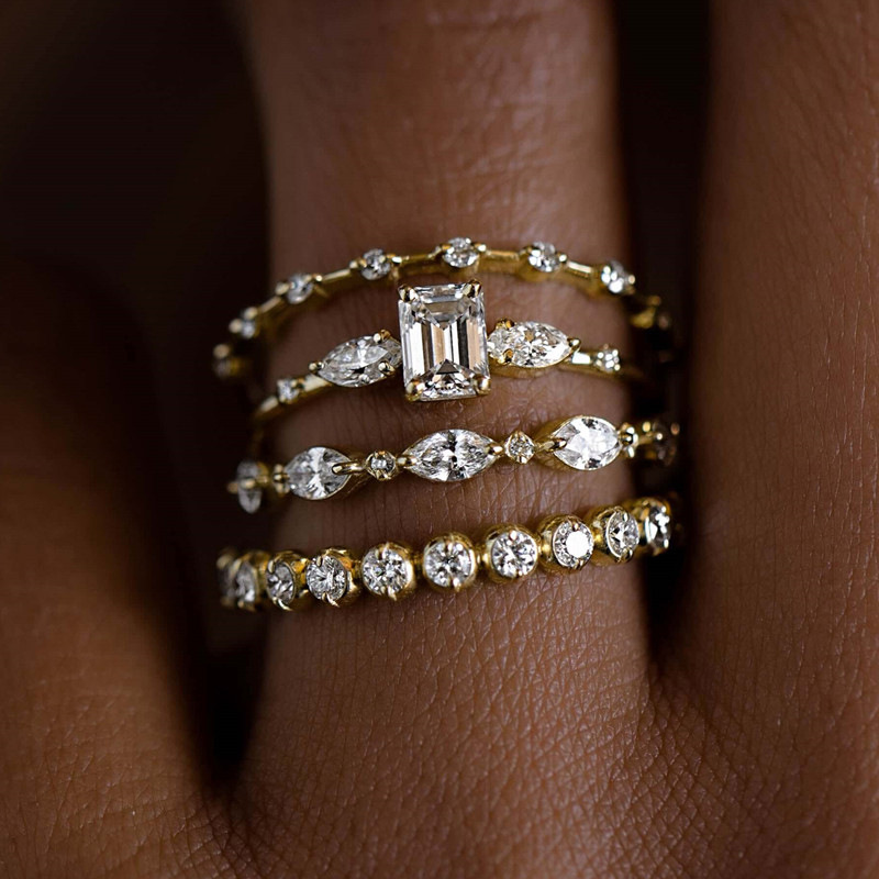 European and Korean temperament all-match geometric zircon ring female exquisite ring four-piece set light luxury high-end jewelry