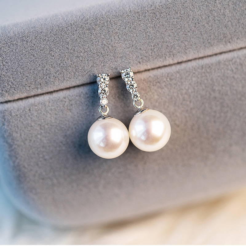 European and Korean temperament earrings for women inlaid with zircon imitation pearl jewelry princess small fragrance style fashion popular earrings